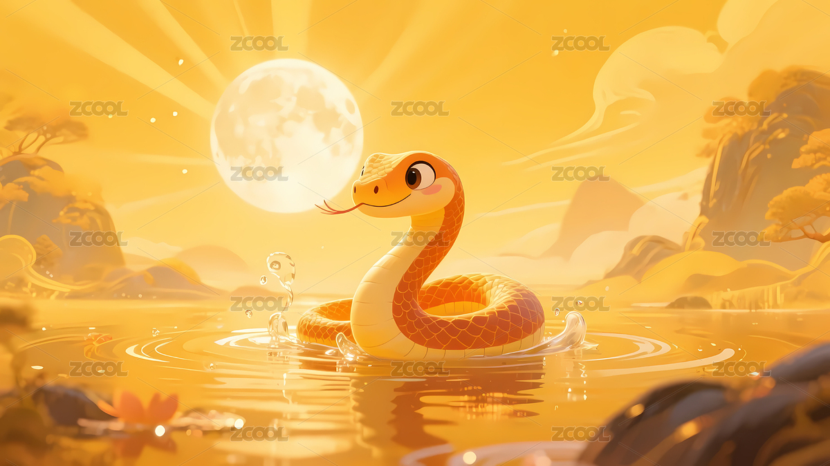 温暖,白色,山脉,橙色,天空,和谐,蛇,卡通,月亮,树木