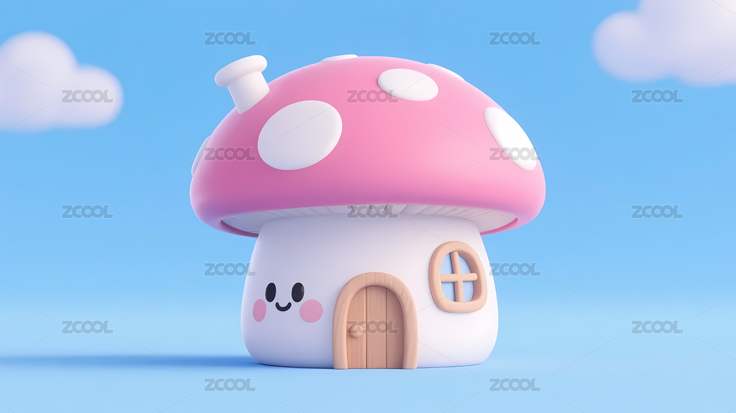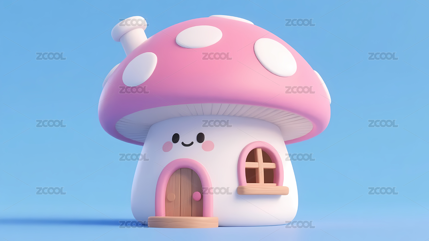 柔和浅蓝粉色蘑菇屋
