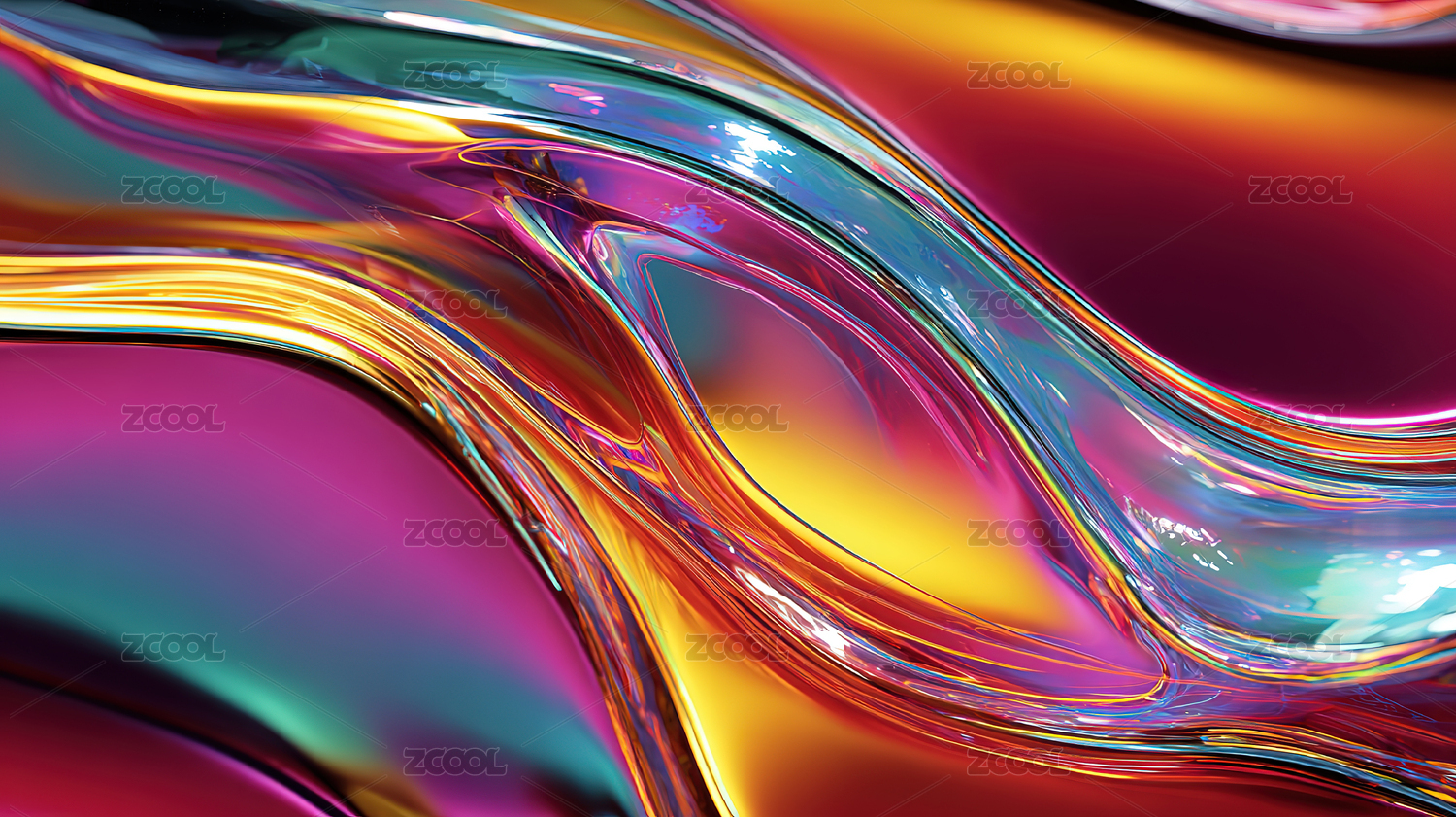 多彩渐变的流动液体,玻璃质感,抽象背景