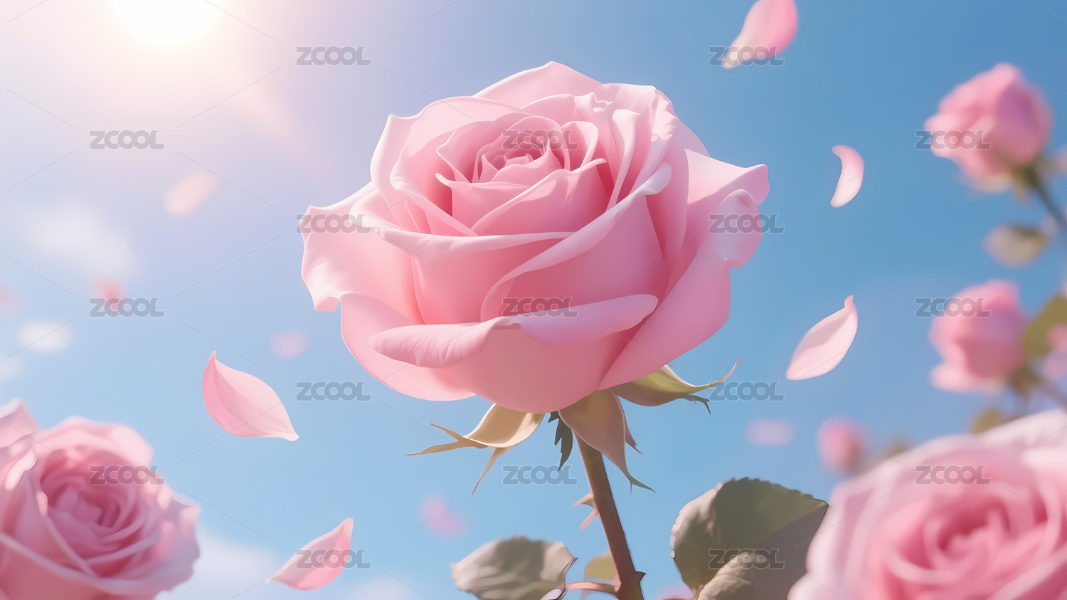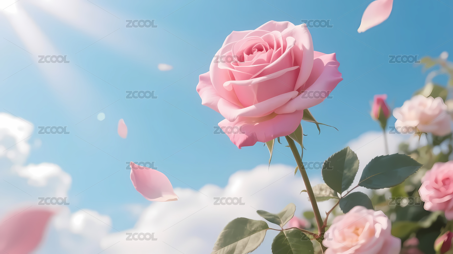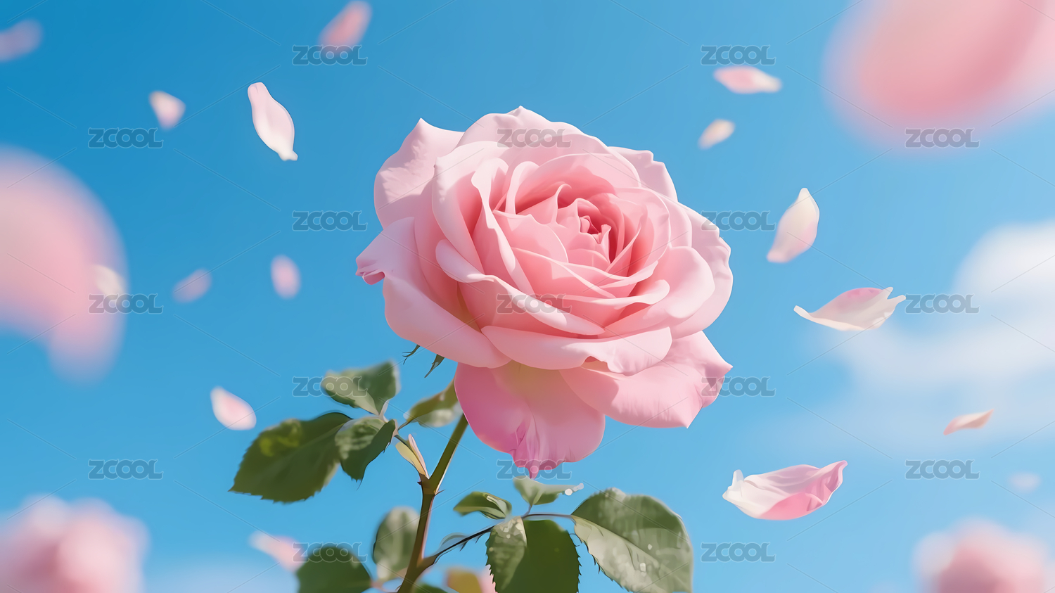 粉色,自然,清新,柔和,花瓣,玫瑰,蓝天,浪漫,飘落,植物
