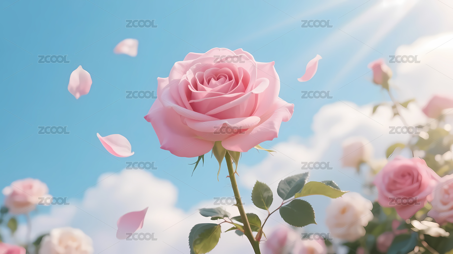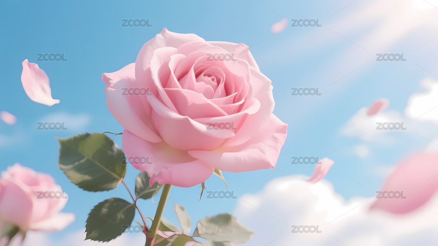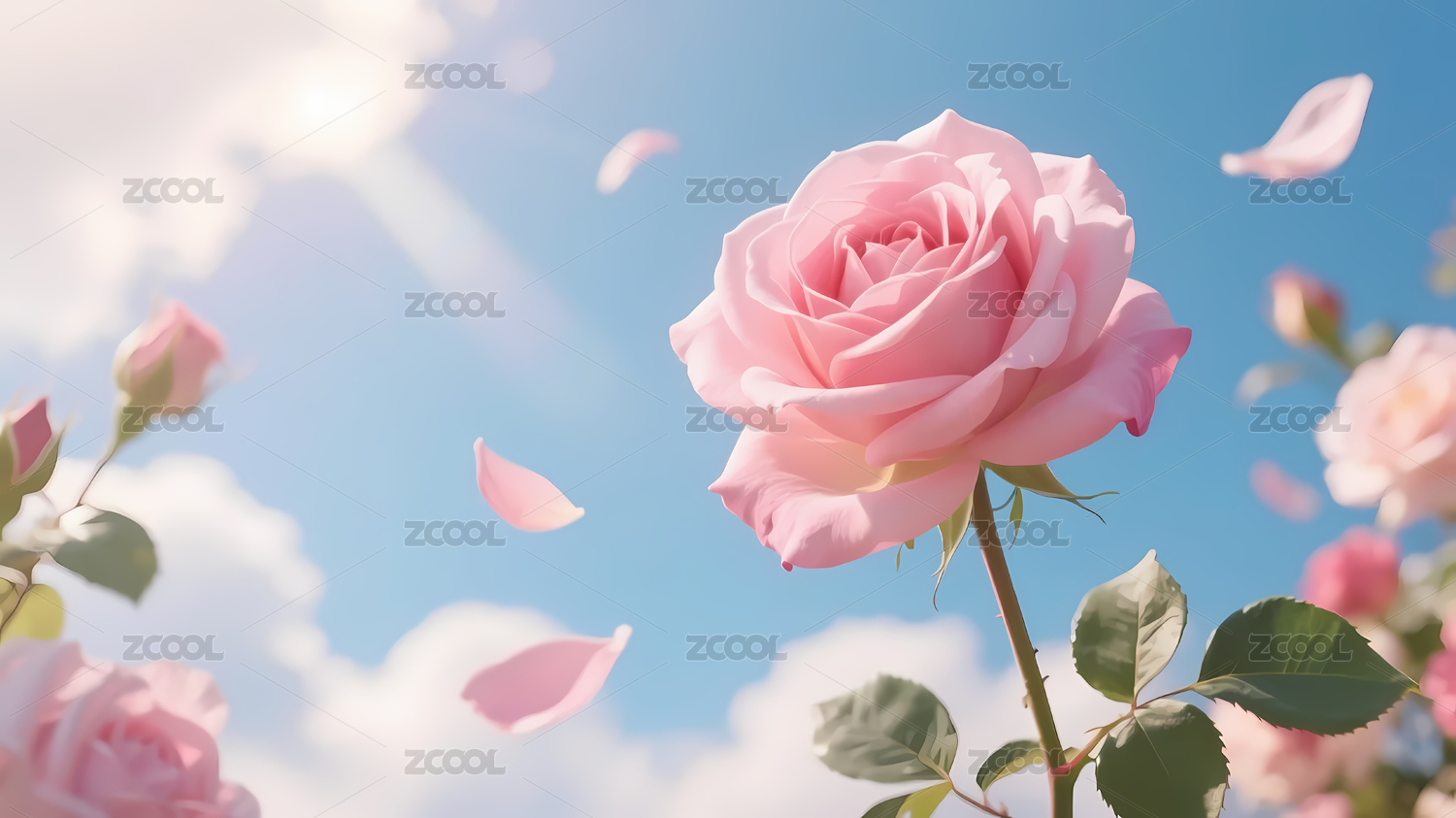 粉色,自然,清新,柔和,花瓣,玫瑰,蓝天,浪漫,飘落,植物