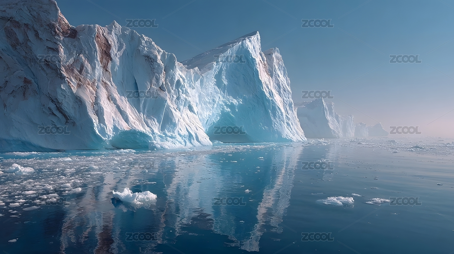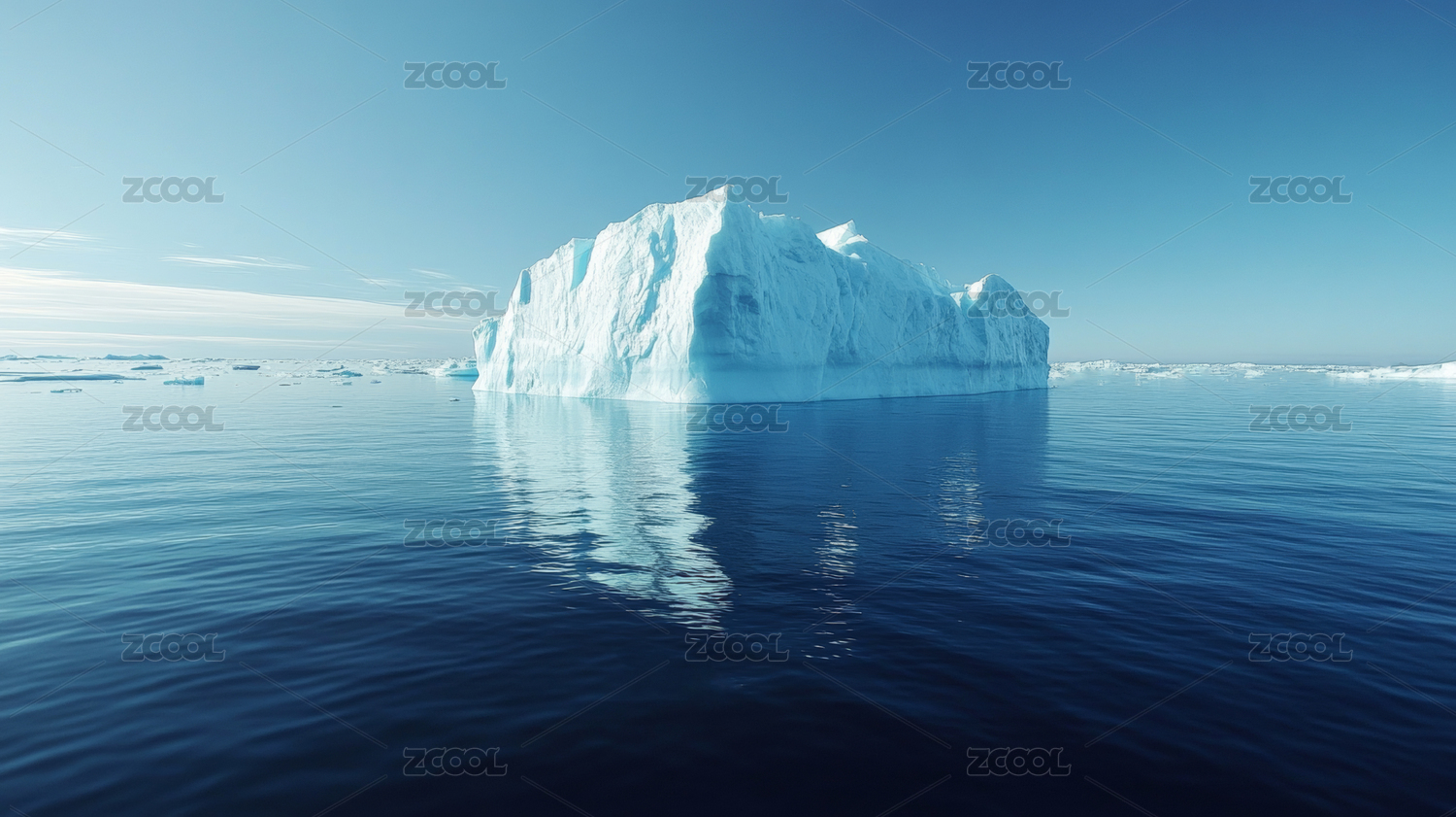 壮丽的北极冰山漂浮在清澈的蓝水中