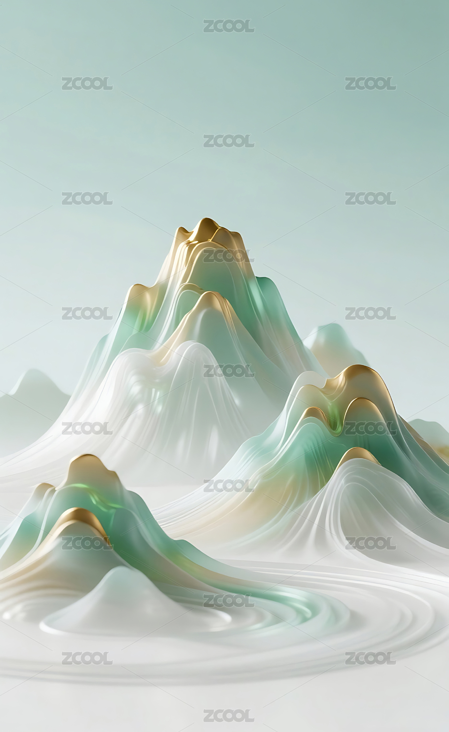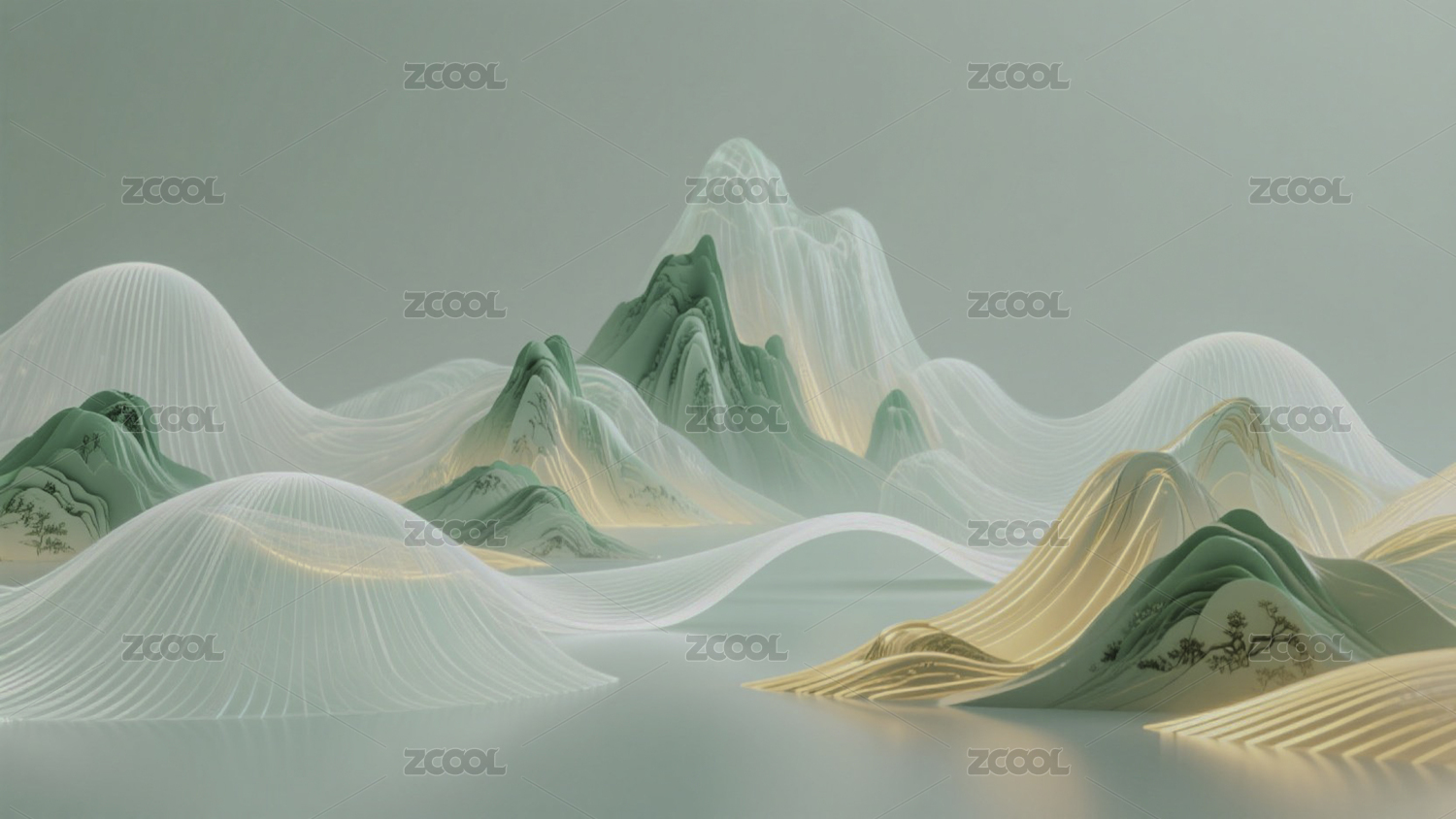 新中式,超现实主义风格,山水画,梦幻,纤维发光艺术,3D设计,装置艺术,C4D渲染,大师风格,背景调色渐变