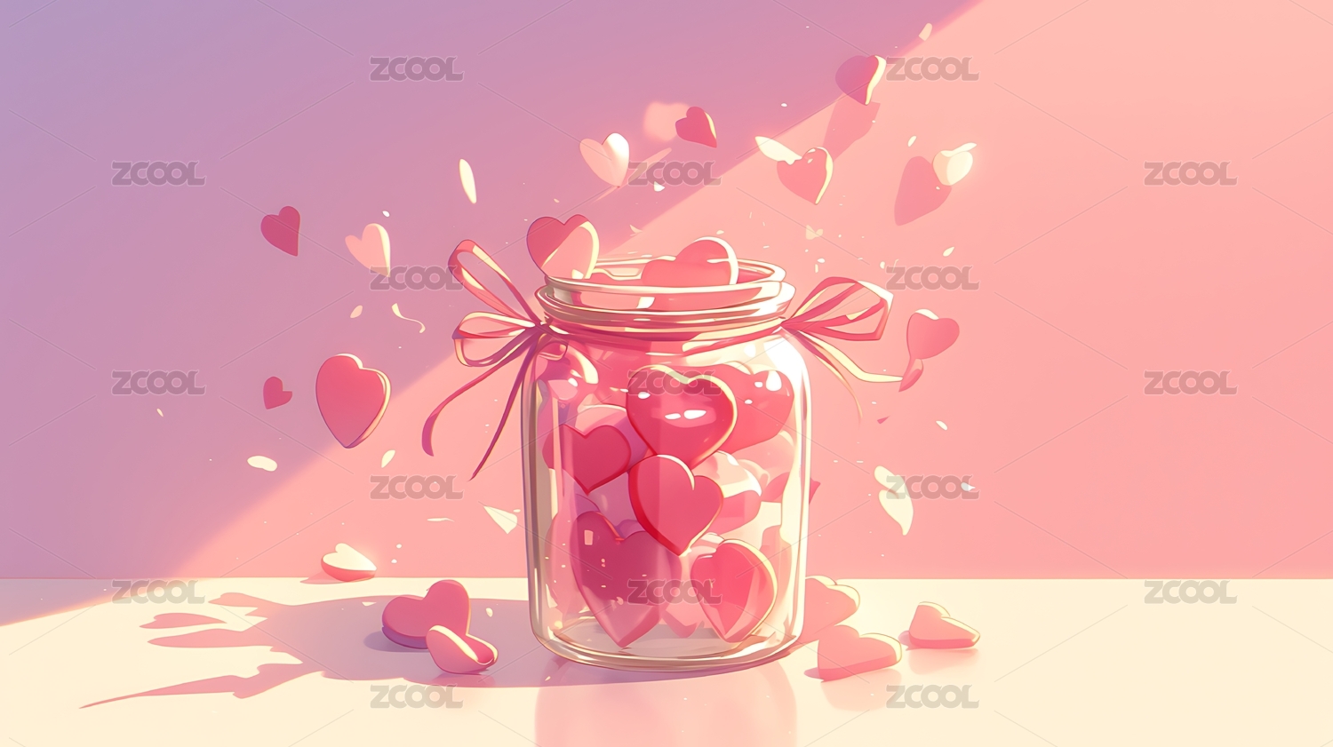 爱心,玻璃罐,浪漫,情人节,发光爱心,红色,温暖,创意,治愈,艺术