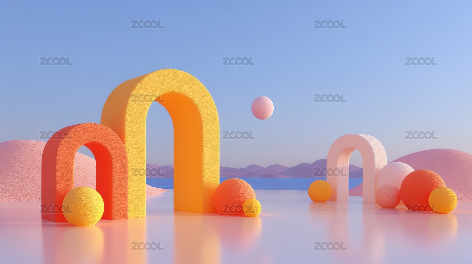 抽象几何形状的梦幻场景