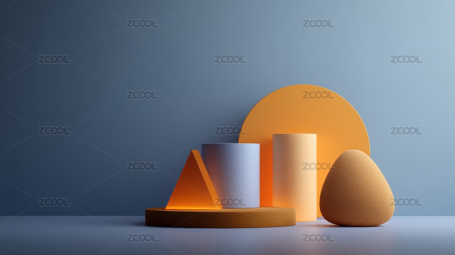 简约,几何,艺术,球体,蓝色,橙色,光影,现代,设计,创意