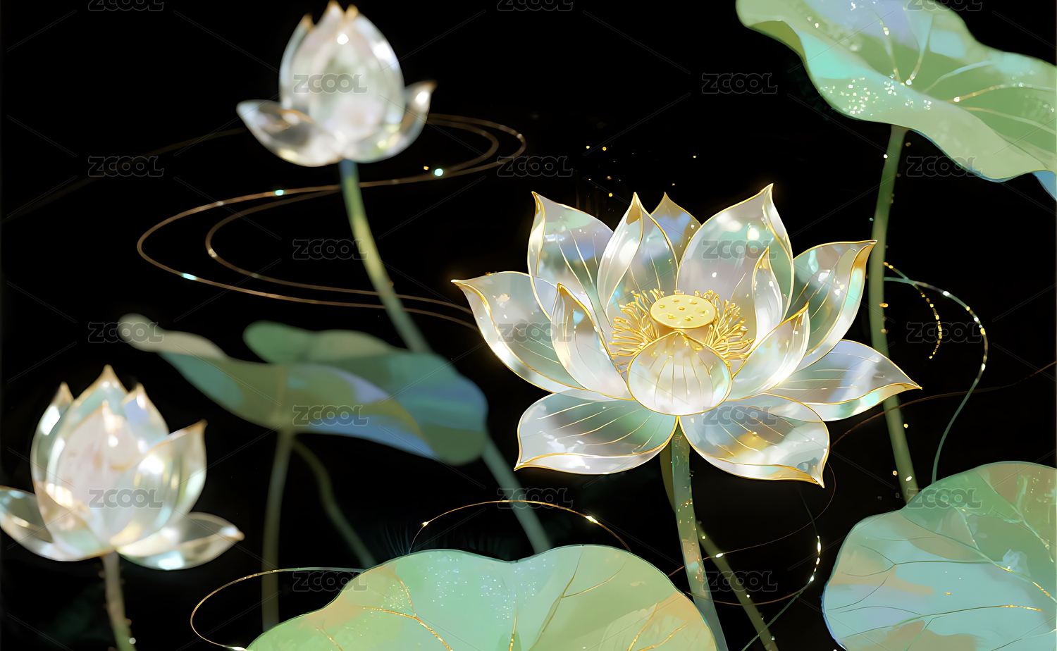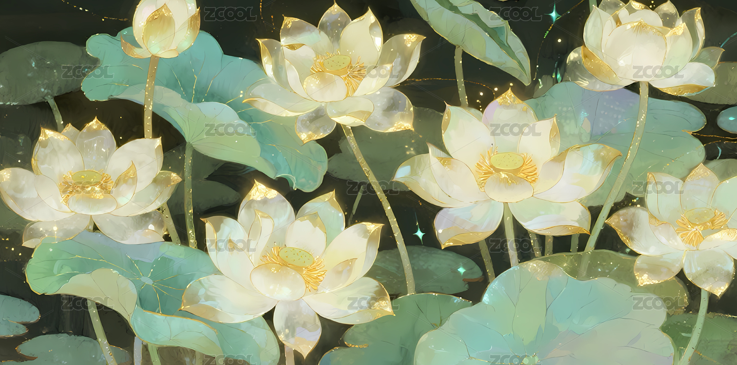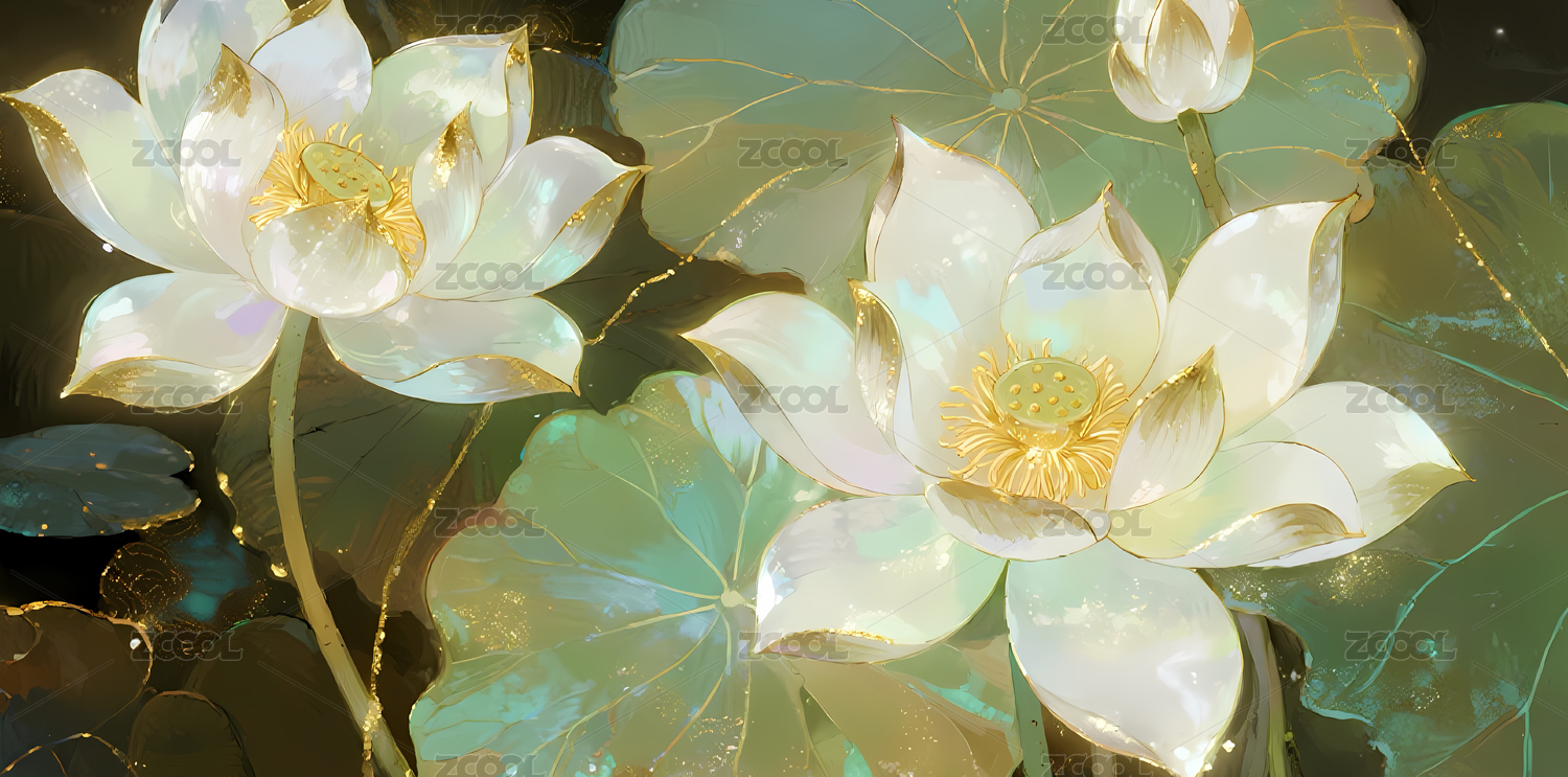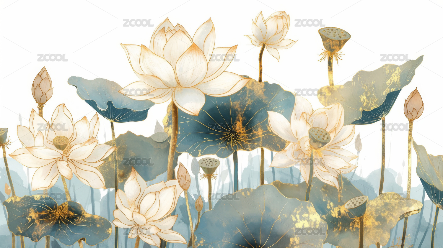 绢笔,艺术,荷花荷叶,插画,背景,壁纸,传统,中式