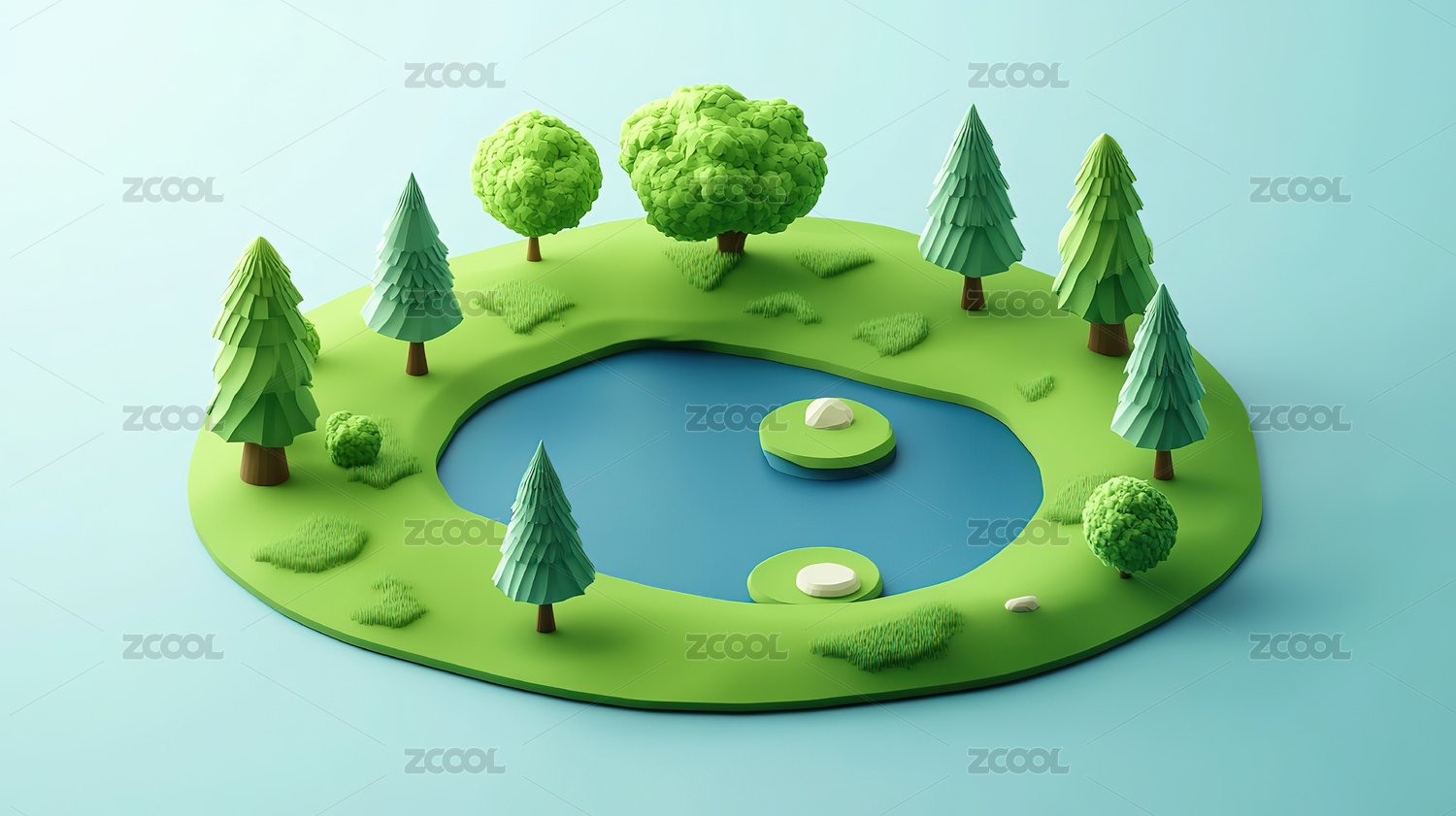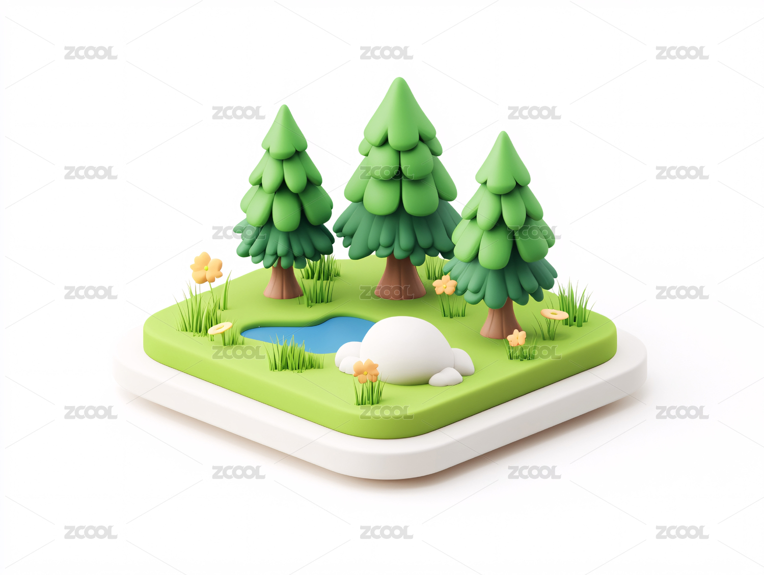 春季森林等距场景春天踏青出行户外旅行插图
