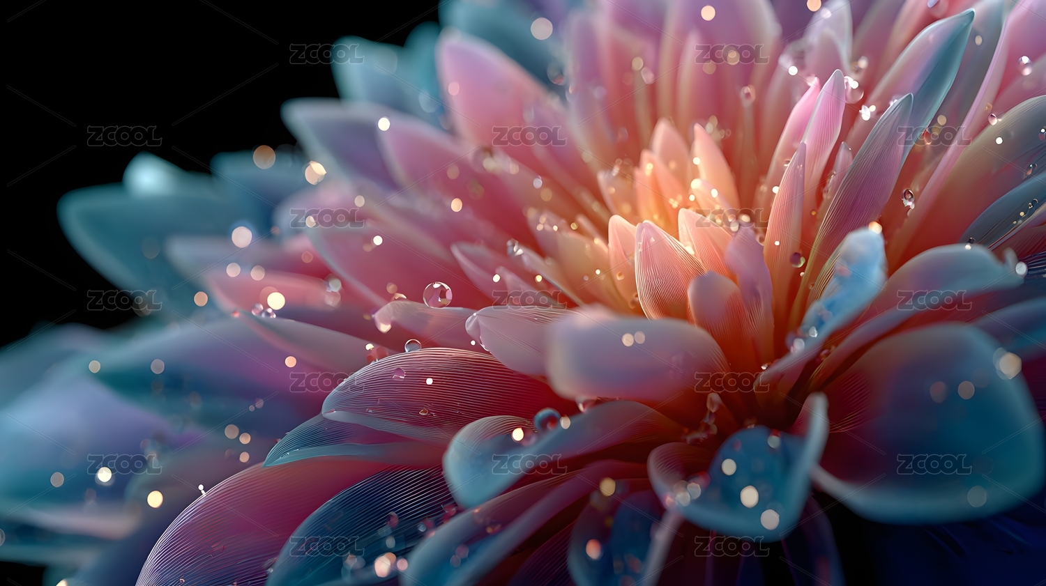 粉牡丹,粒子,特效,花卉,粉色,花瓣,黑色,背景,绽放,浪漫