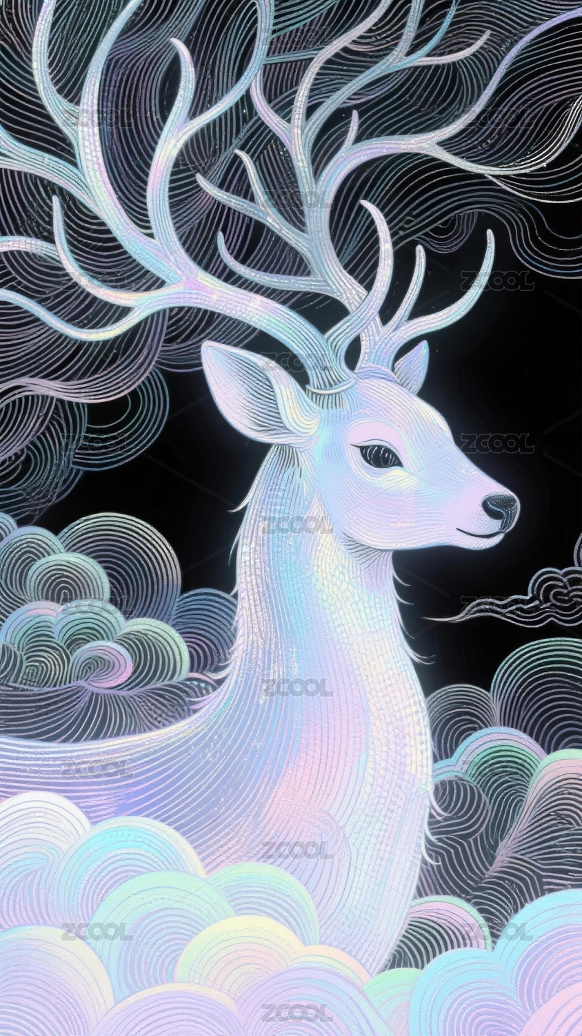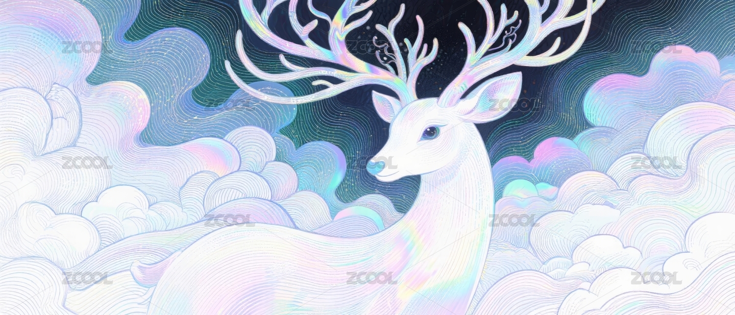 梦幻线描云鹿艺术背景