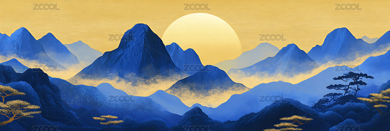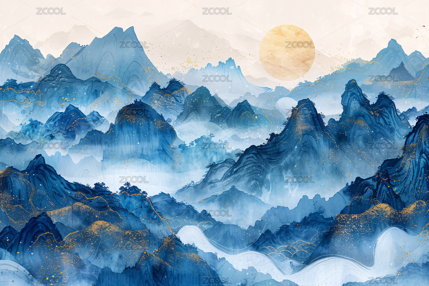 新国风古风国潮青绿山水画水墨传统背景壁纸