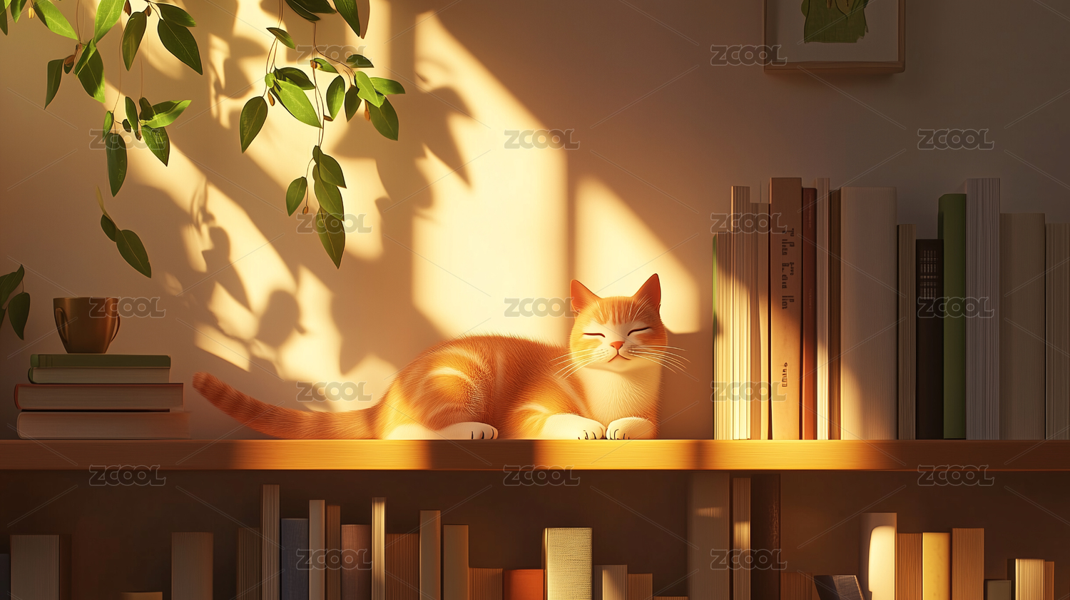 图书馆中的慵懒猫咪