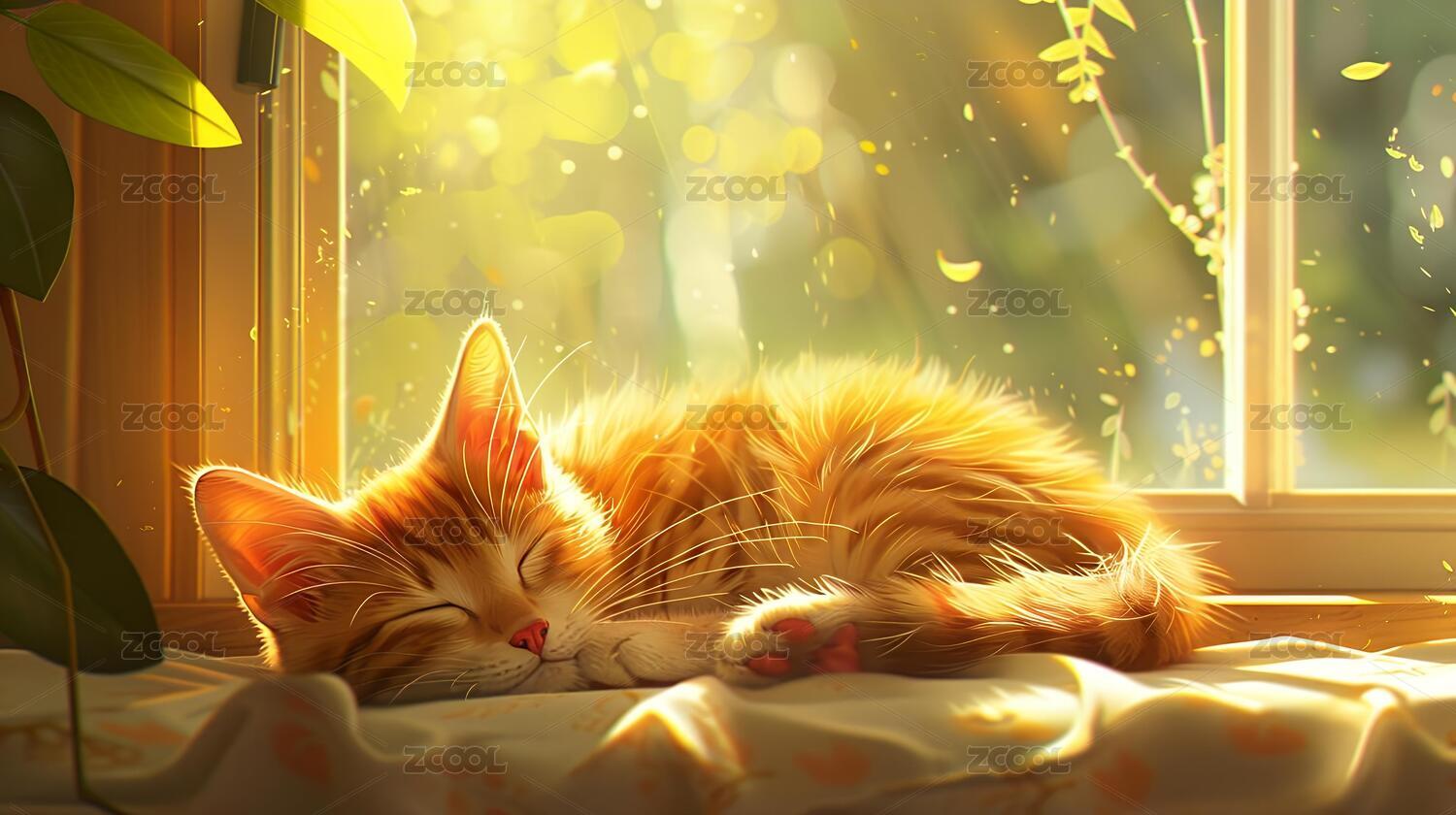 窗台上睡觉的猫咪