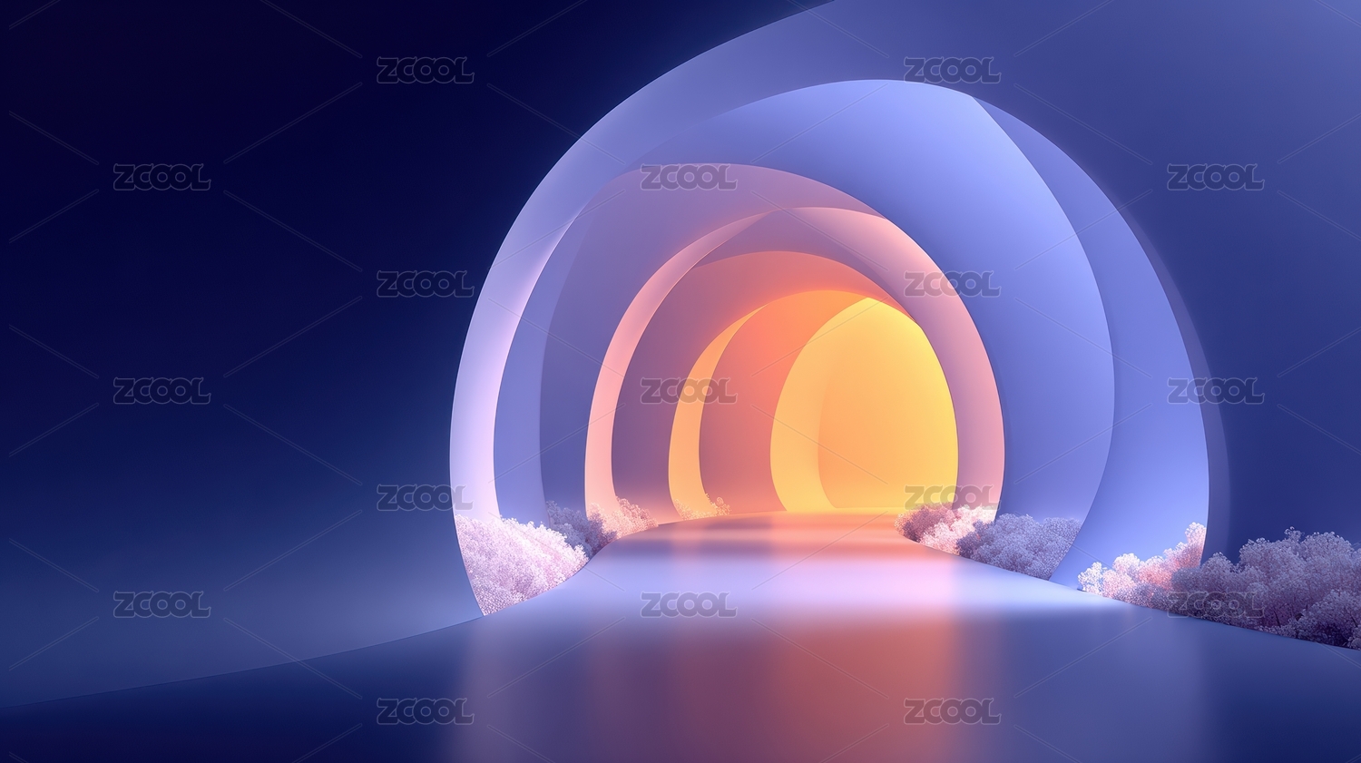 隧道,光影,蓝色,橙色,空间感,未来科技,反射,现代设计,抽象艺术,光线效果
