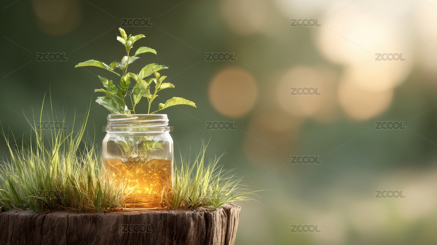 绿色,光影,自然,户外,光芒,玻璃瓶,植物,生态,小花,苔藓