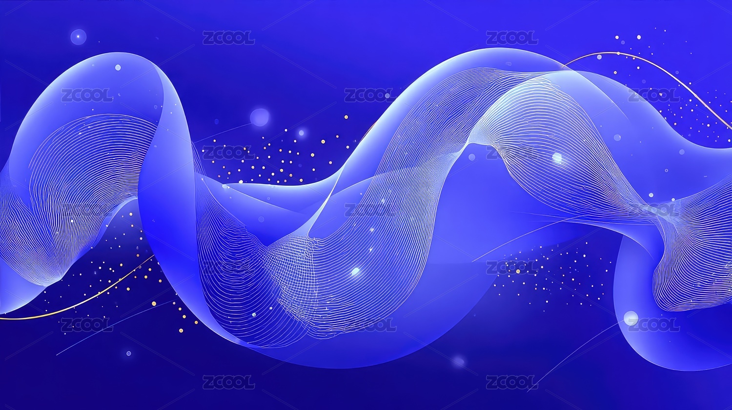 豪华蓝色和金色抽象背景,抽象闪亮的波浪设