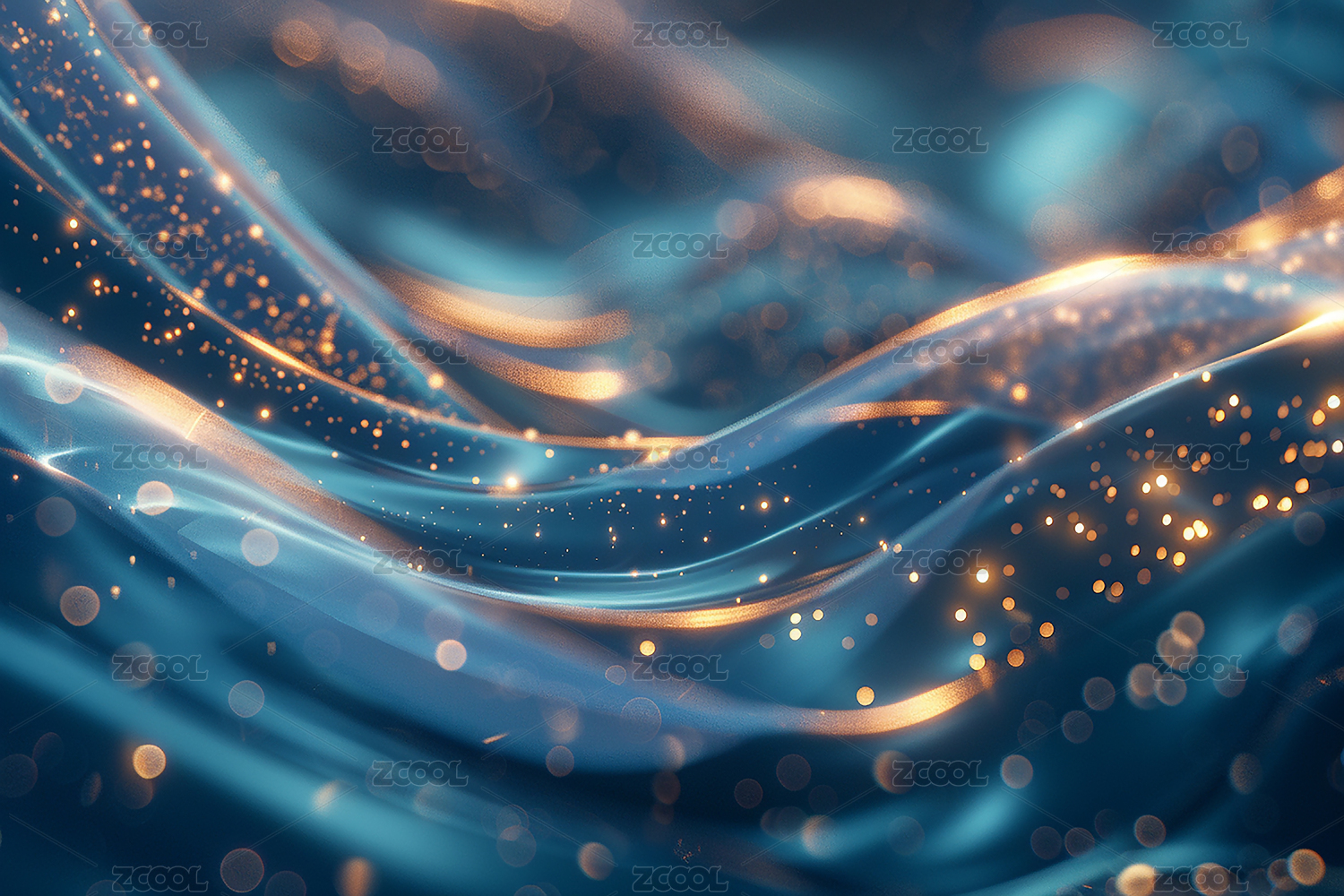 蓝色波浪曲线金色光点背景
