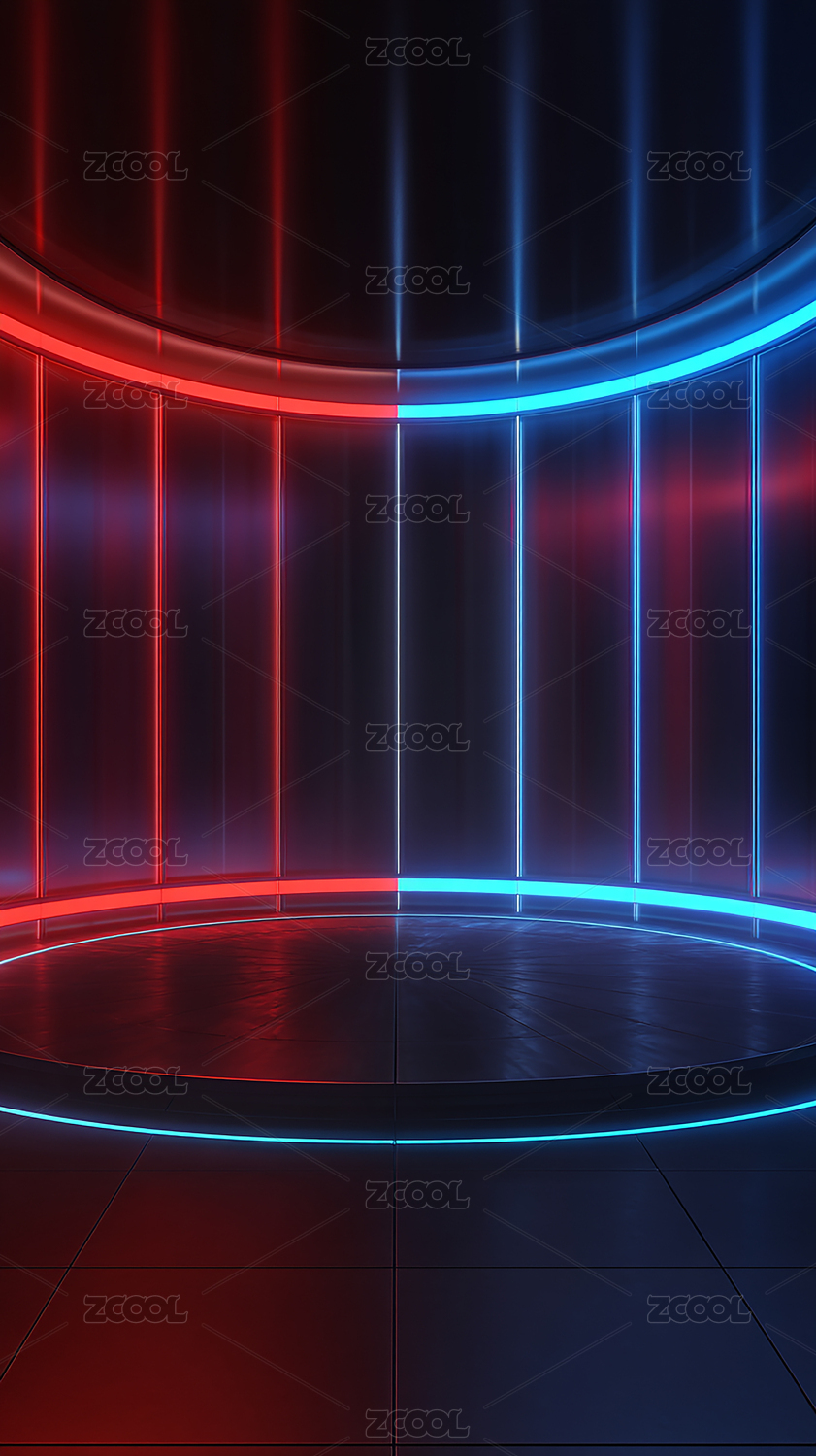 赛博,朋克,霓虹,科技,空间,未来,环形,灯光,红蓝,舞台