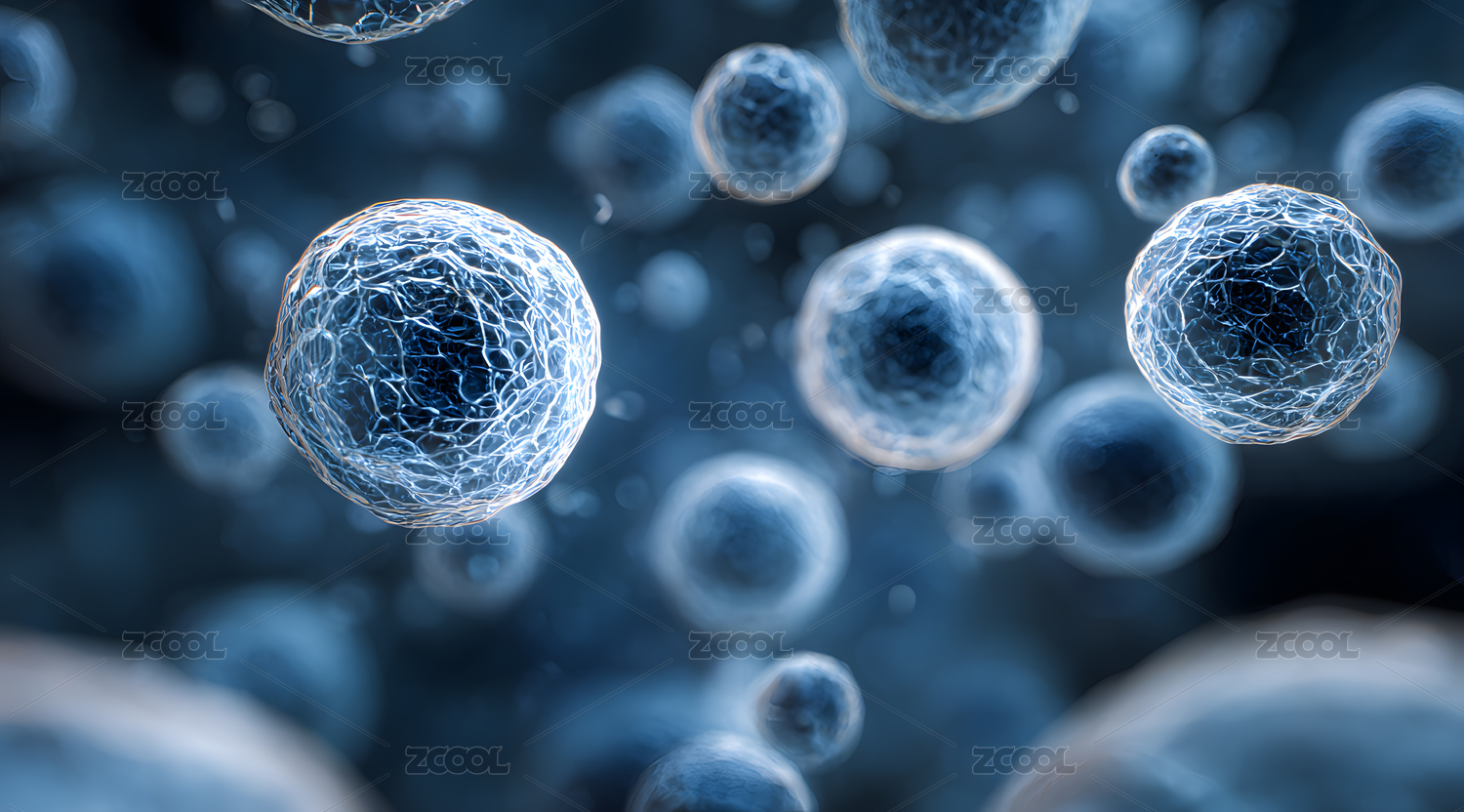 蓝色背景下表面细节丰富的细菌病毒,三维渲染