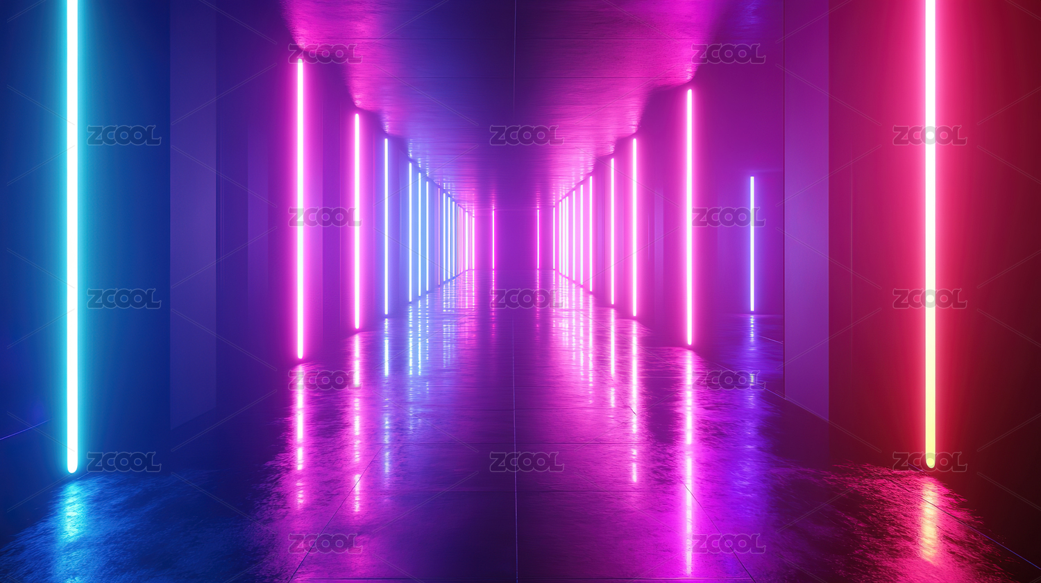 霓虹灯隧道的未来科技感场景