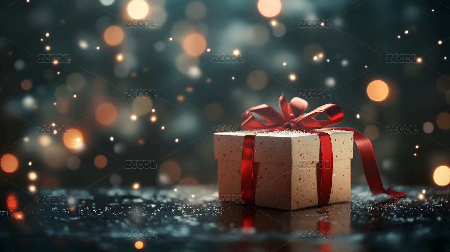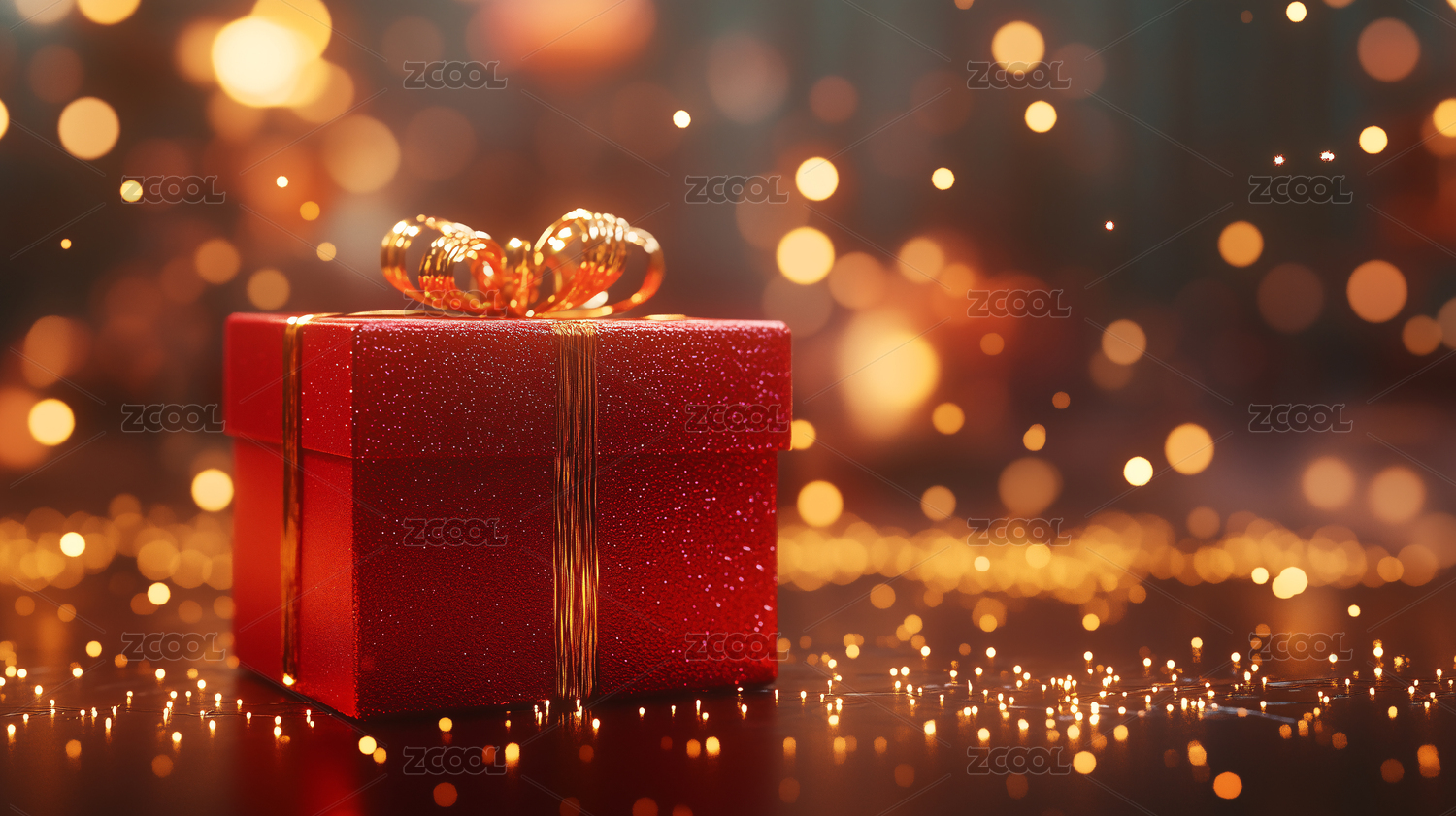 礼品盒和朦胧的光点背景