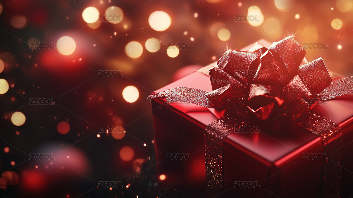 闪亮红色礼盒的节日惊喜