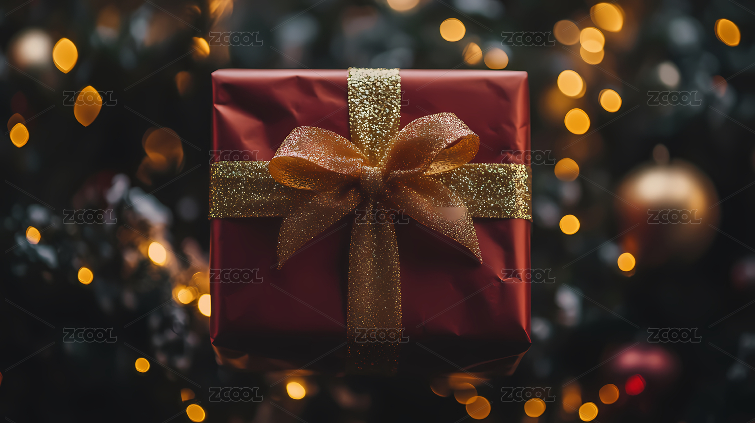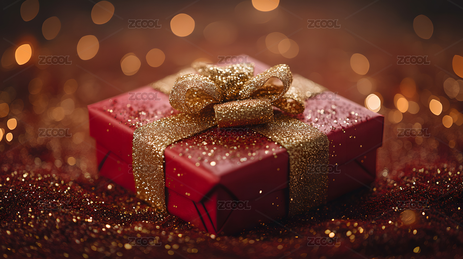 红色礼盒与金色丝带蝴蝶结