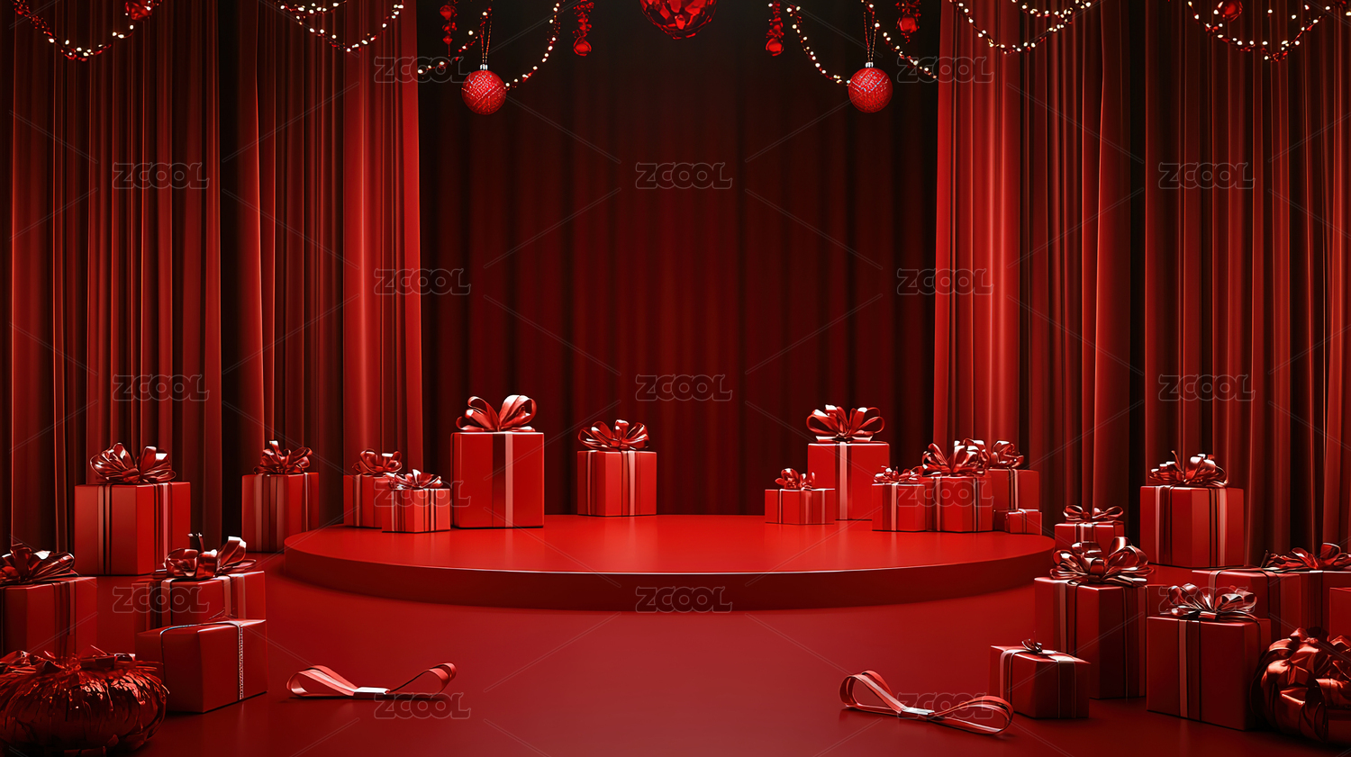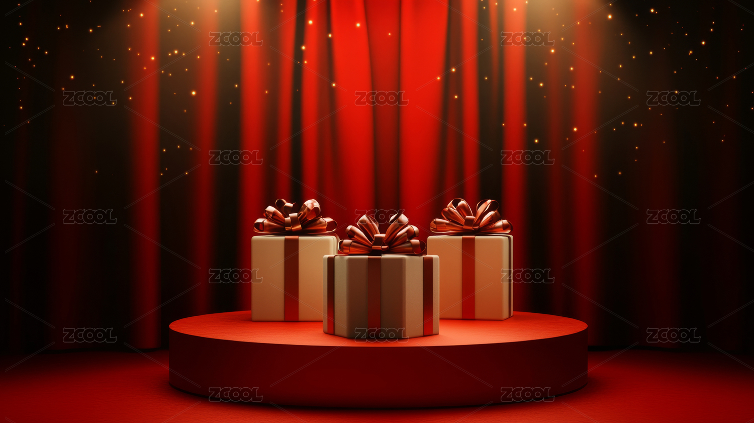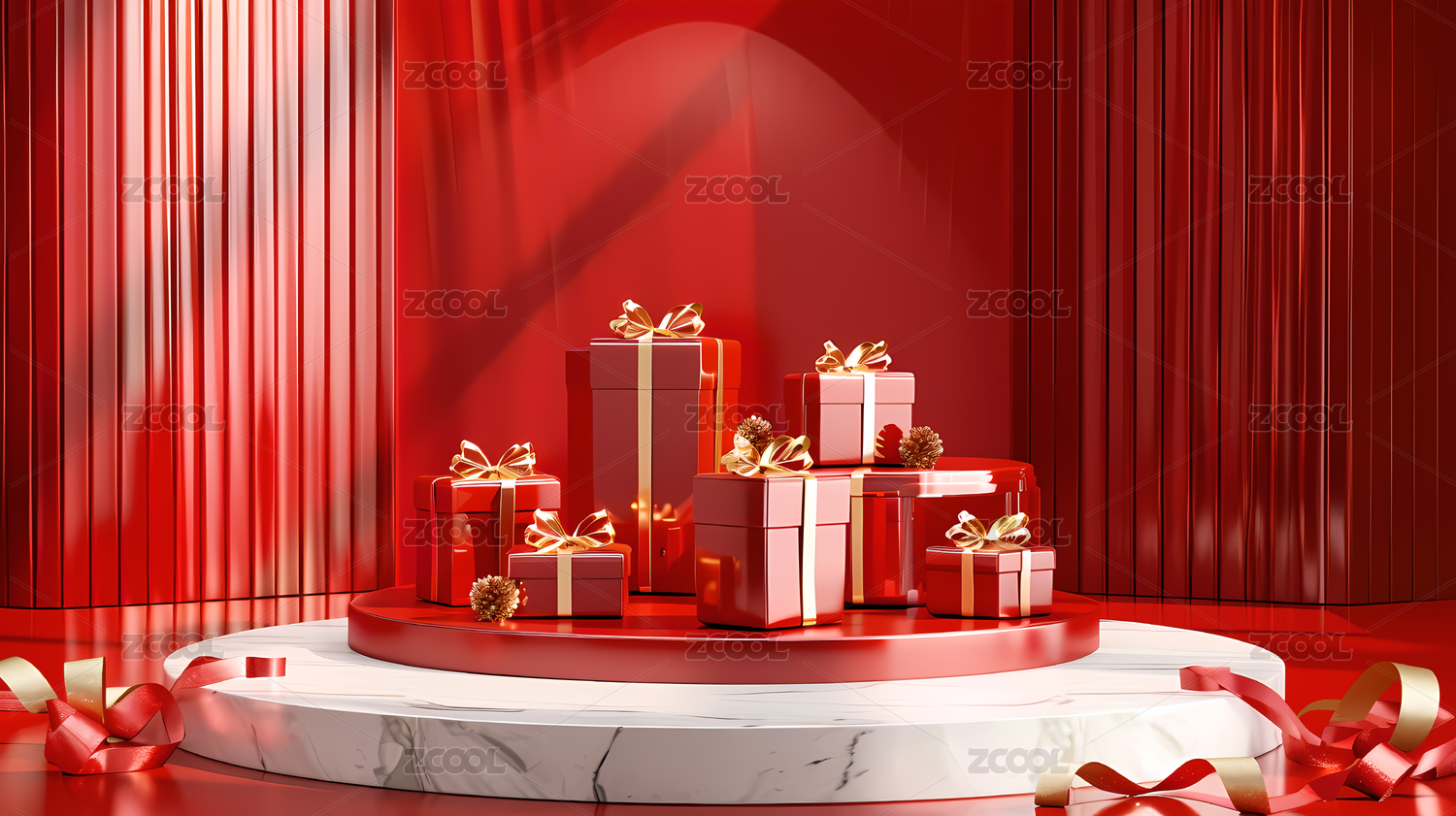 装饰着礼品盒的氛围感产品展台电子商务促销