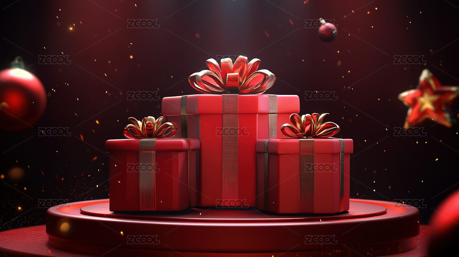 装饰着礼品盒的氛围感产品展台电子商务促销