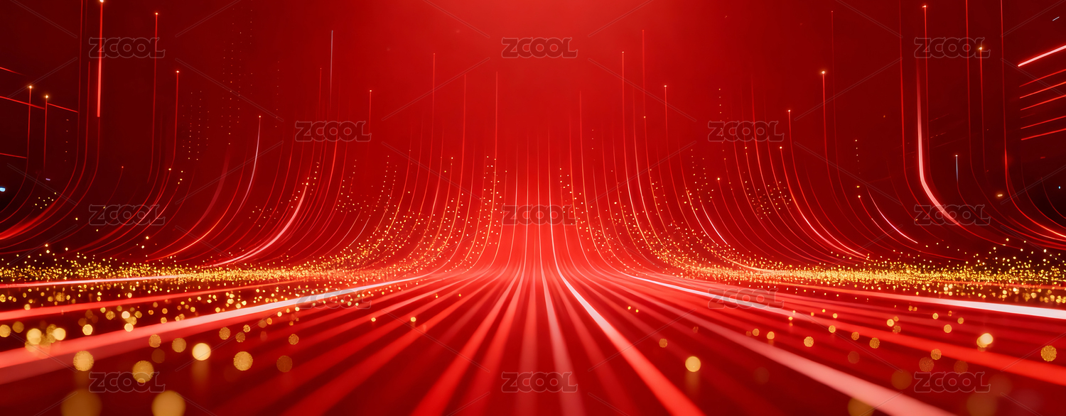 金色粒子线围绕红色背景喜庆科技感海报背景