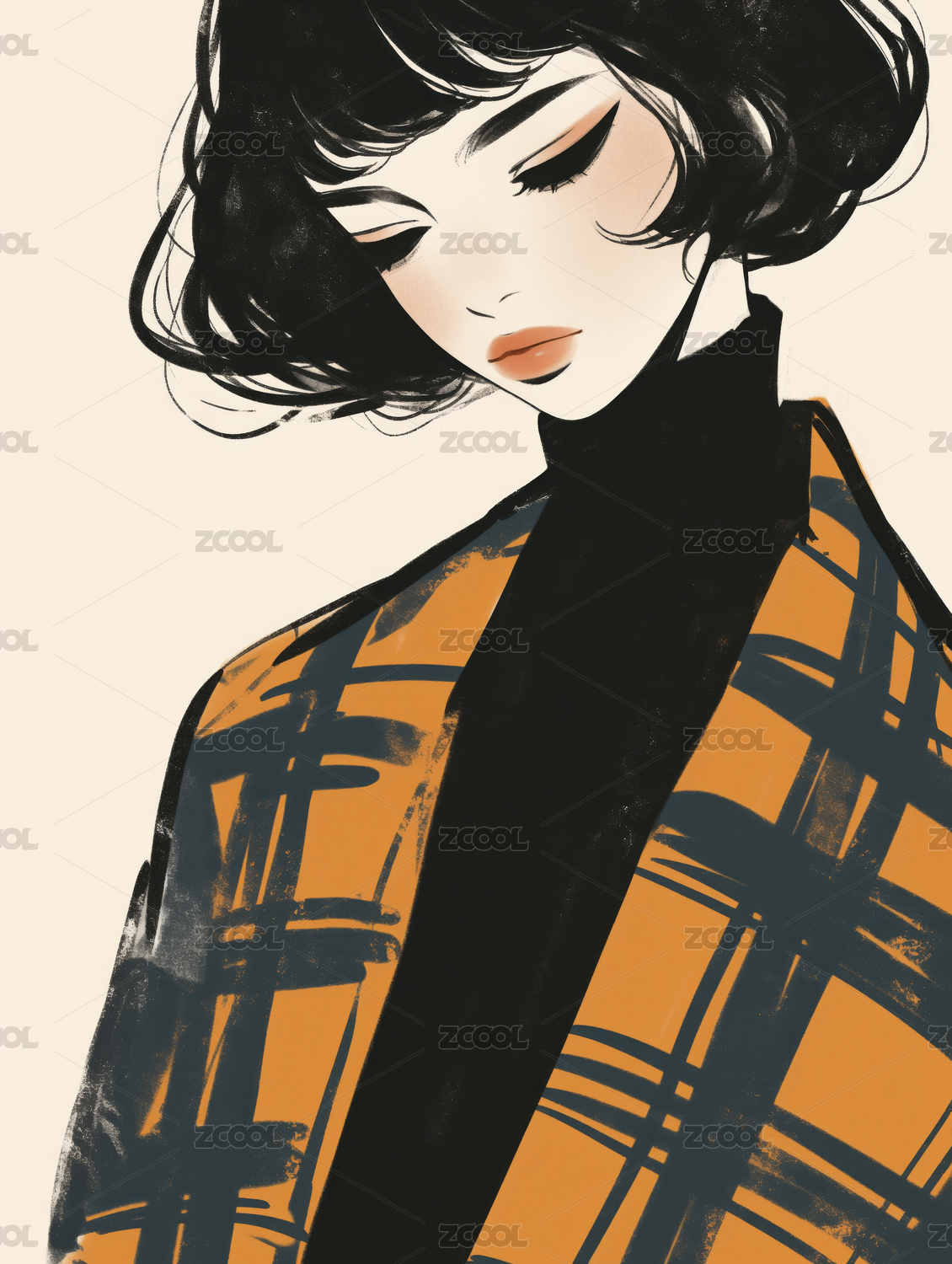 时尚服装画水墨人物装饰画服装杂志封面文旅海报宣传画