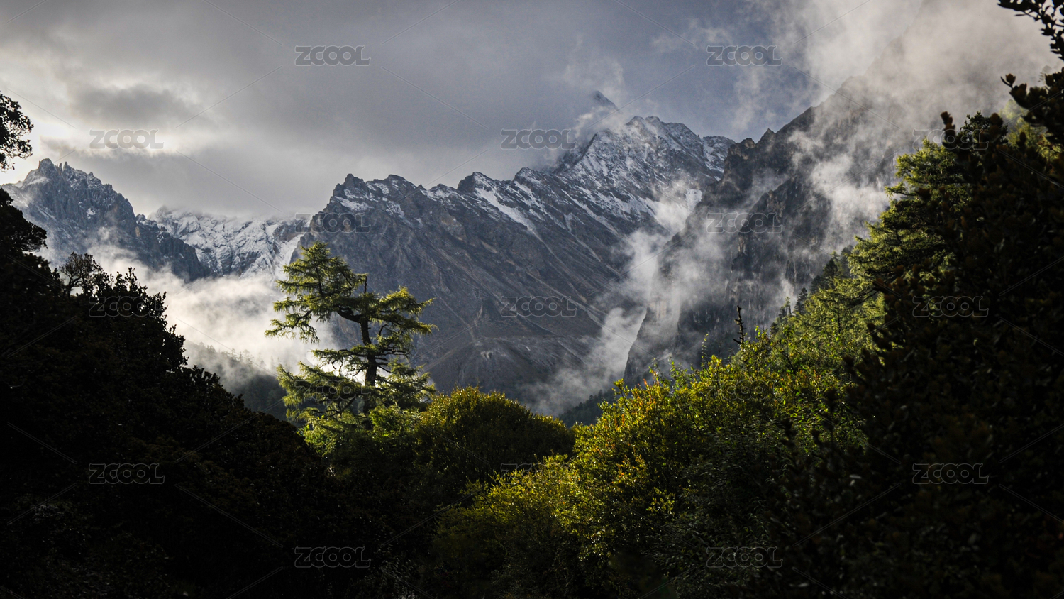 自然, 背景, 美丽, 风景,雪山, 山峰, 壮观, 绿树, 蓝天, 白云