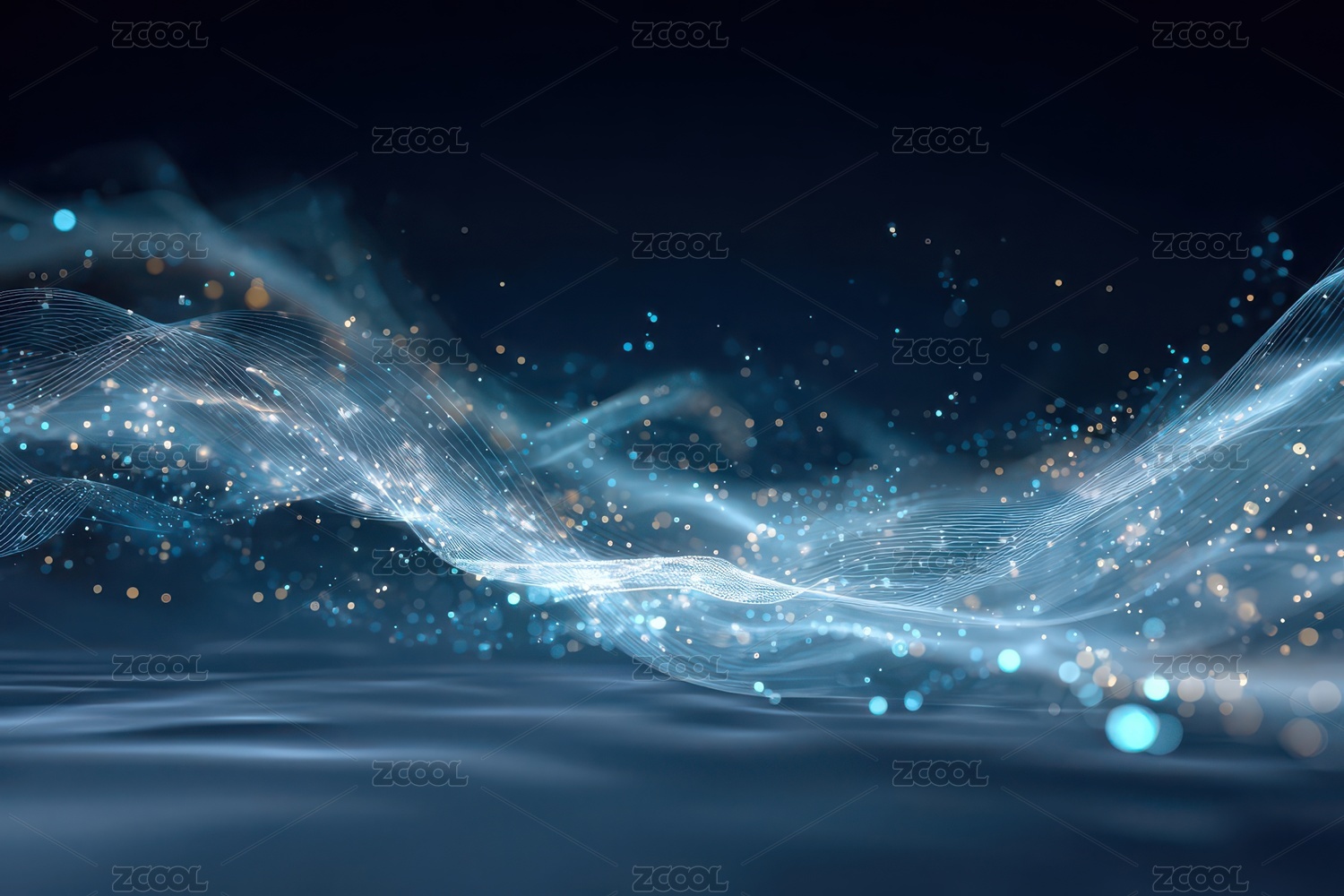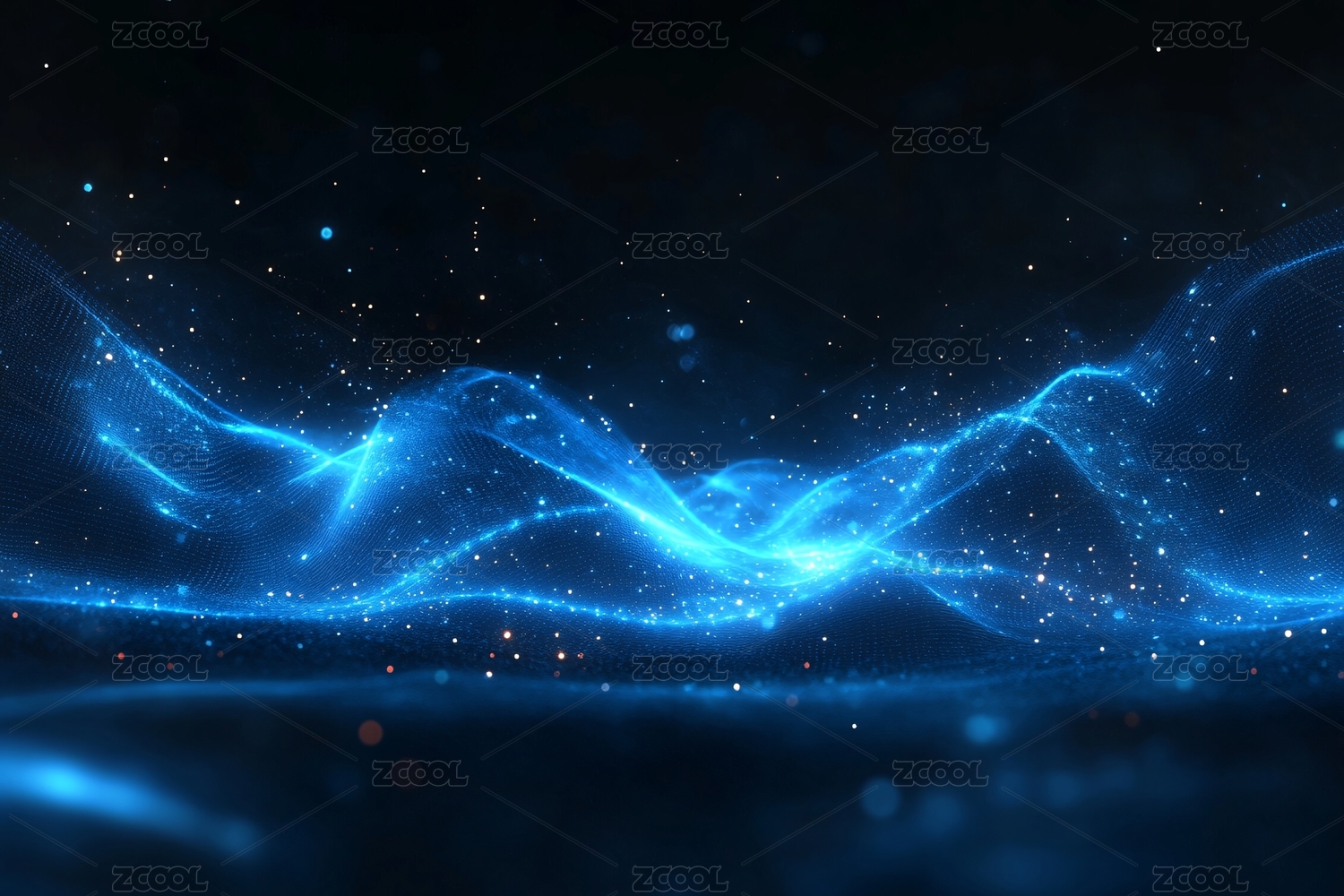 蓝色波浪与光点