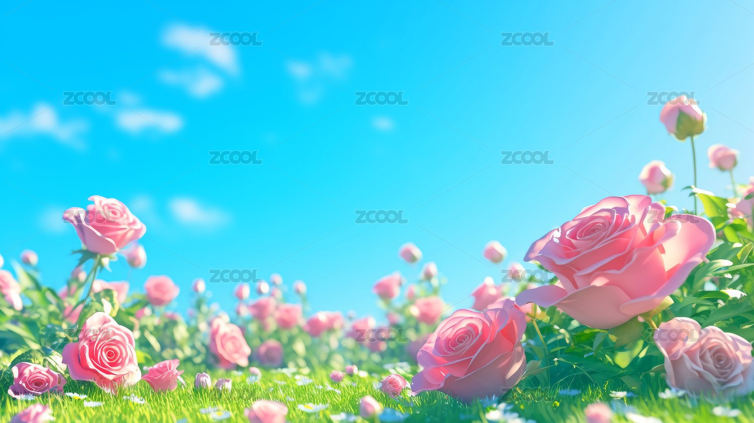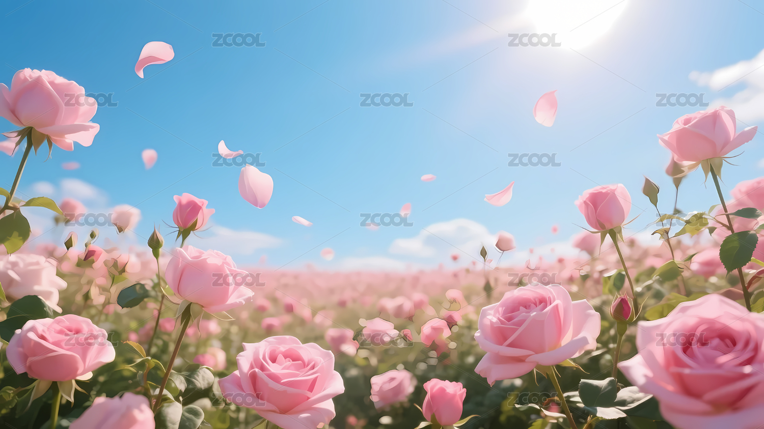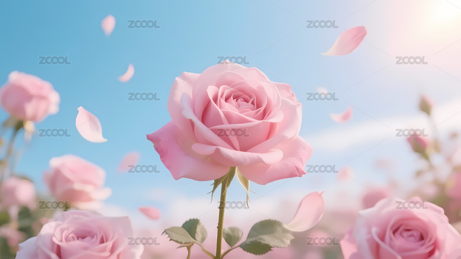 背景,盛开,粉色,玫瑰,蓝天,花瓣,柔和,自然,温馨,白云