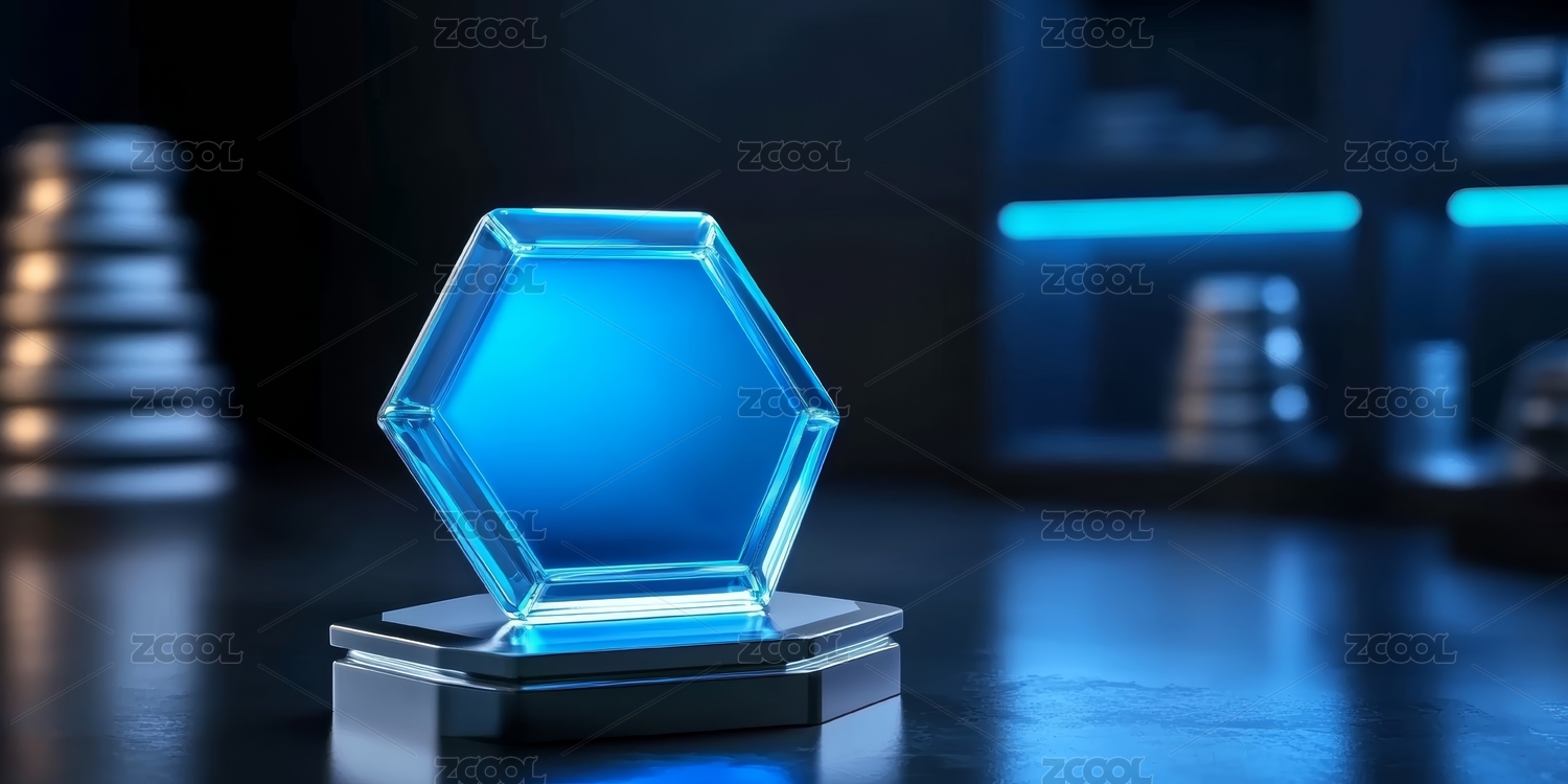 蓝色背景下桌子上的蓝色灯光特写镜头