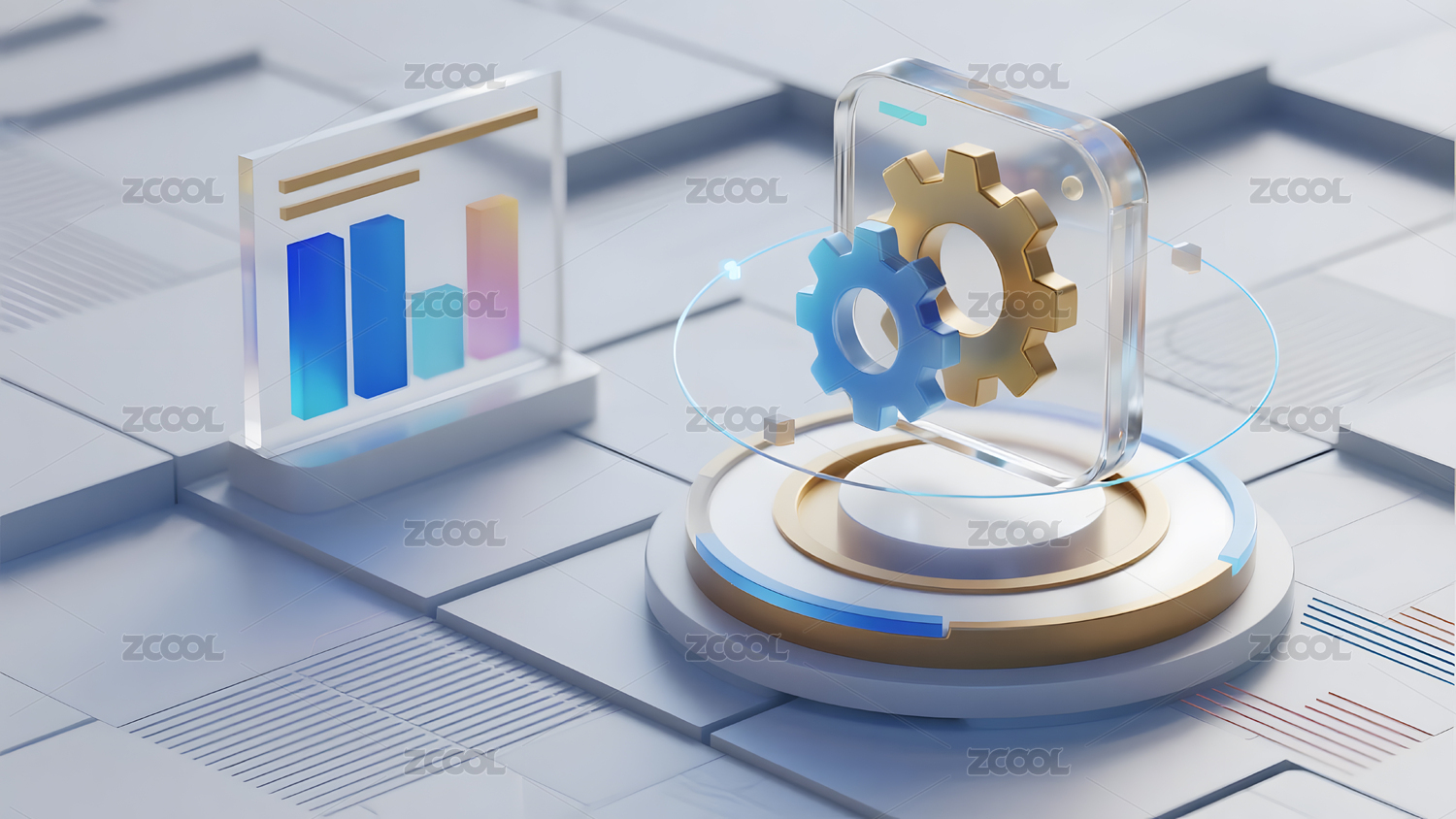 齿轮,柱状图,圆形,蓝色,白色,几何图形,光影,透明,现代,科技感