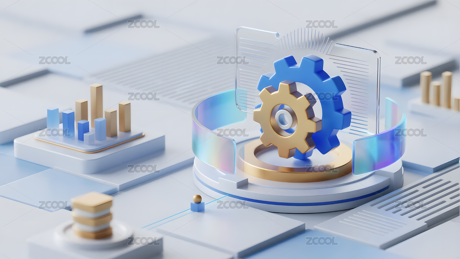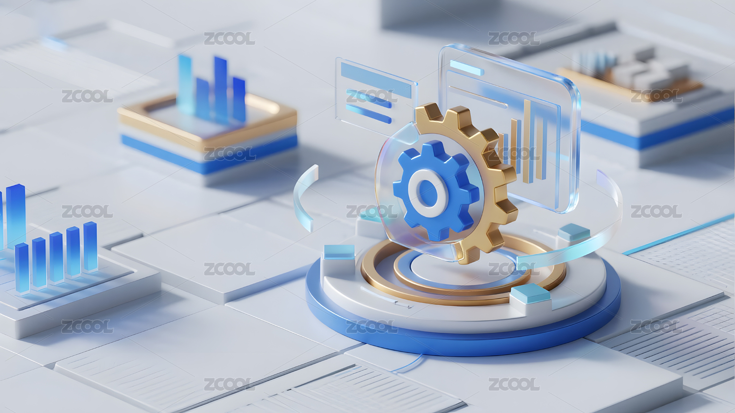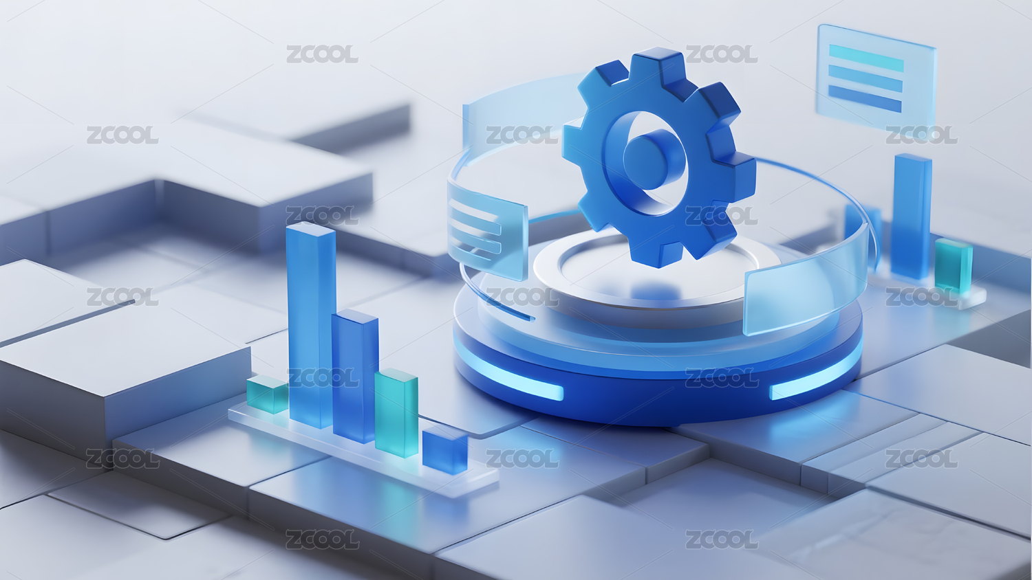 齿轮,柱状图,圆形,蓝色,白色,几何图形,光影,透明,现代,科技感