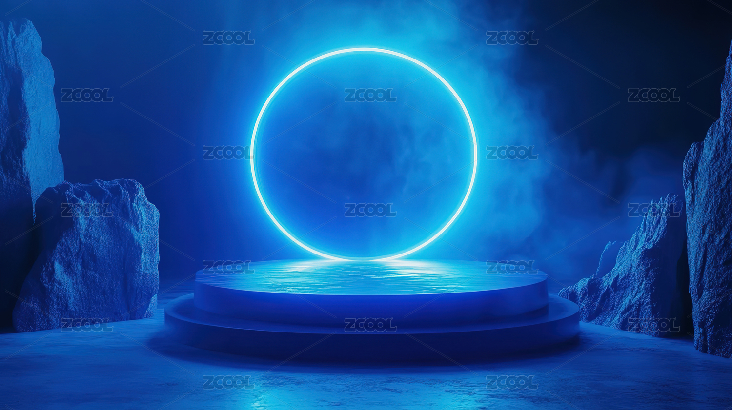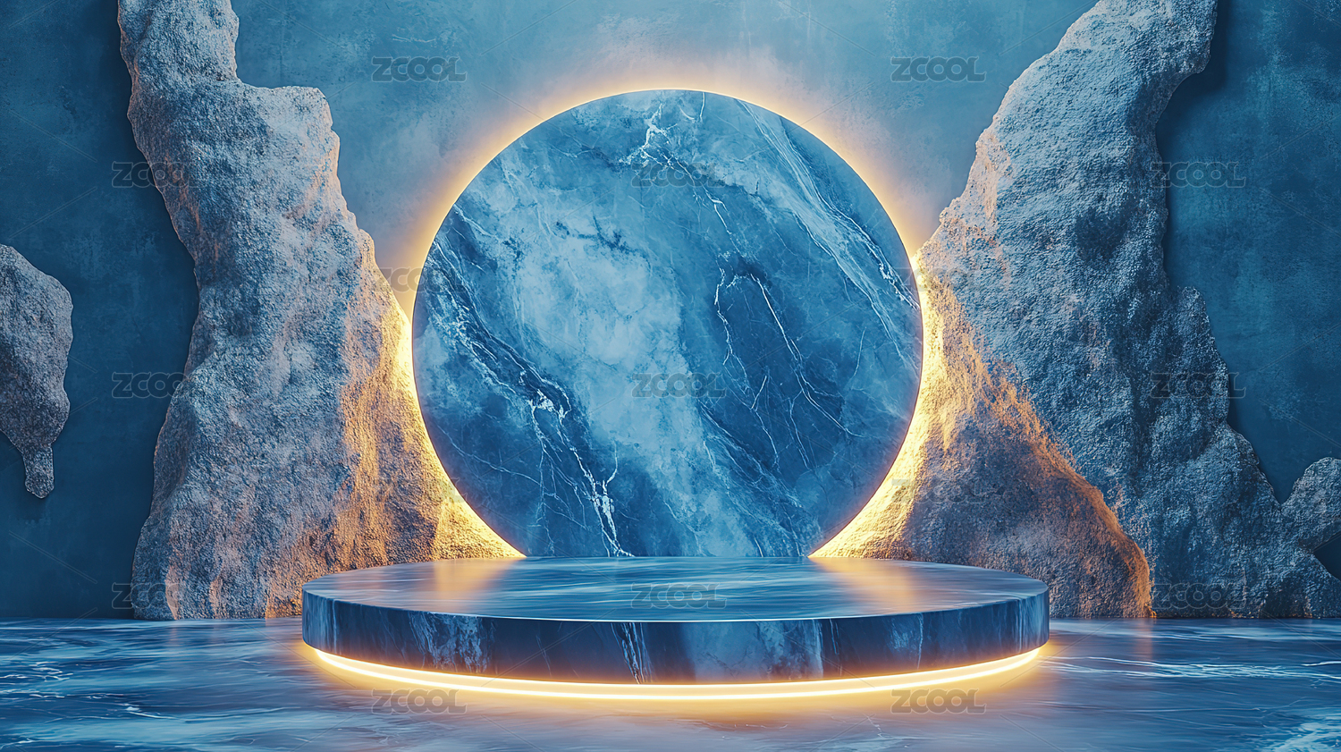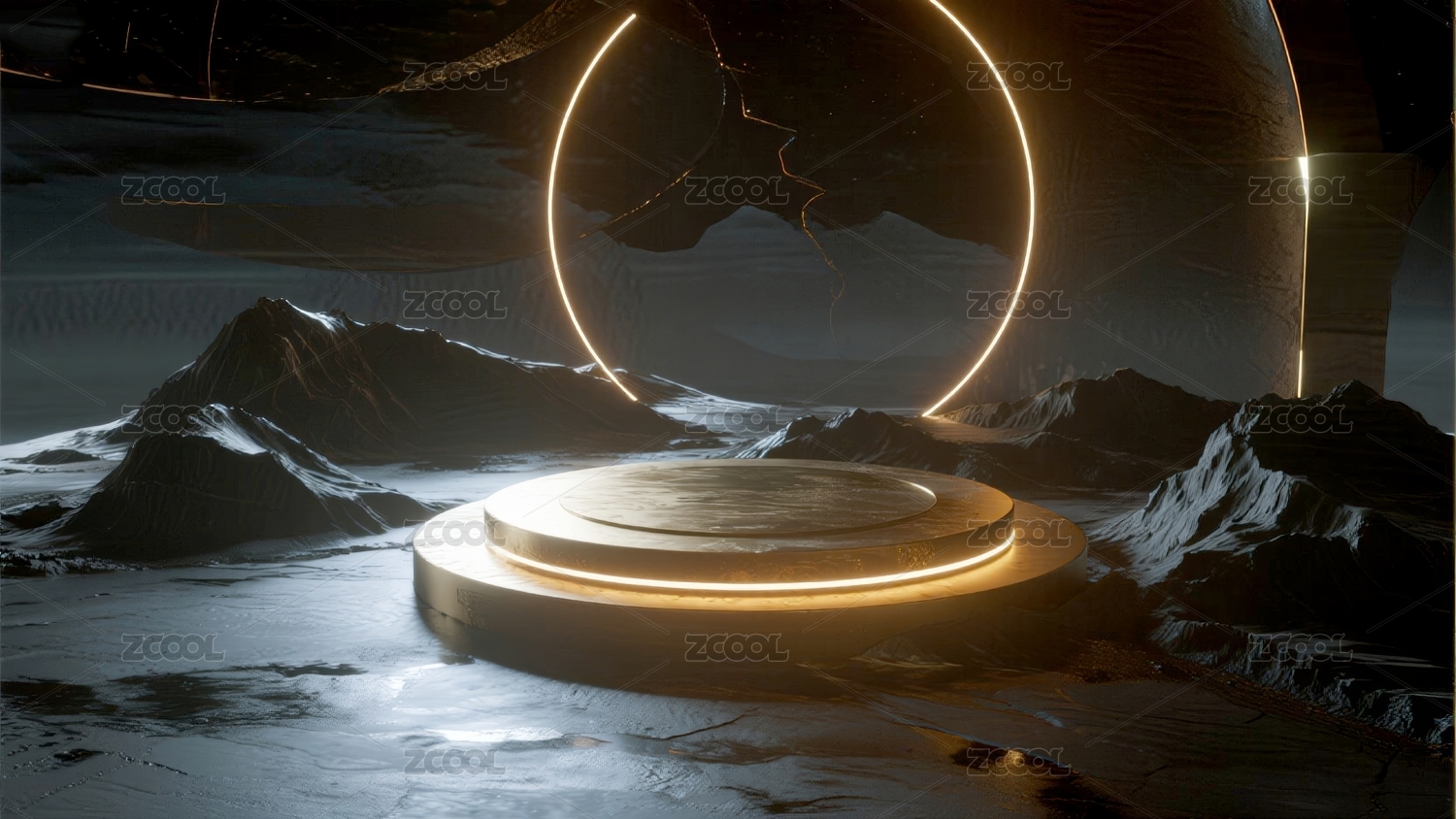 大理石,黑色,圆形,平台,岩石,环境,发光,金色,圆环,神秘
