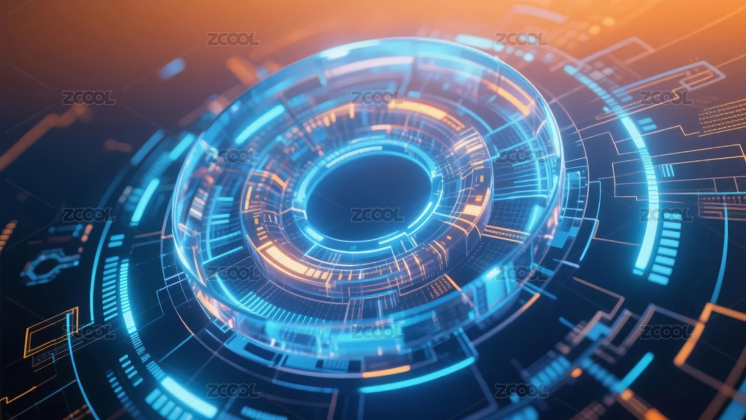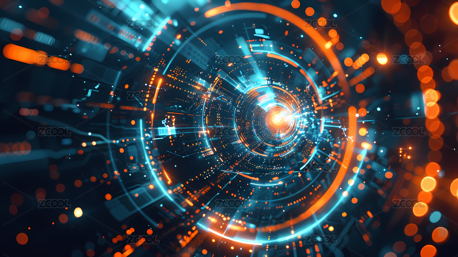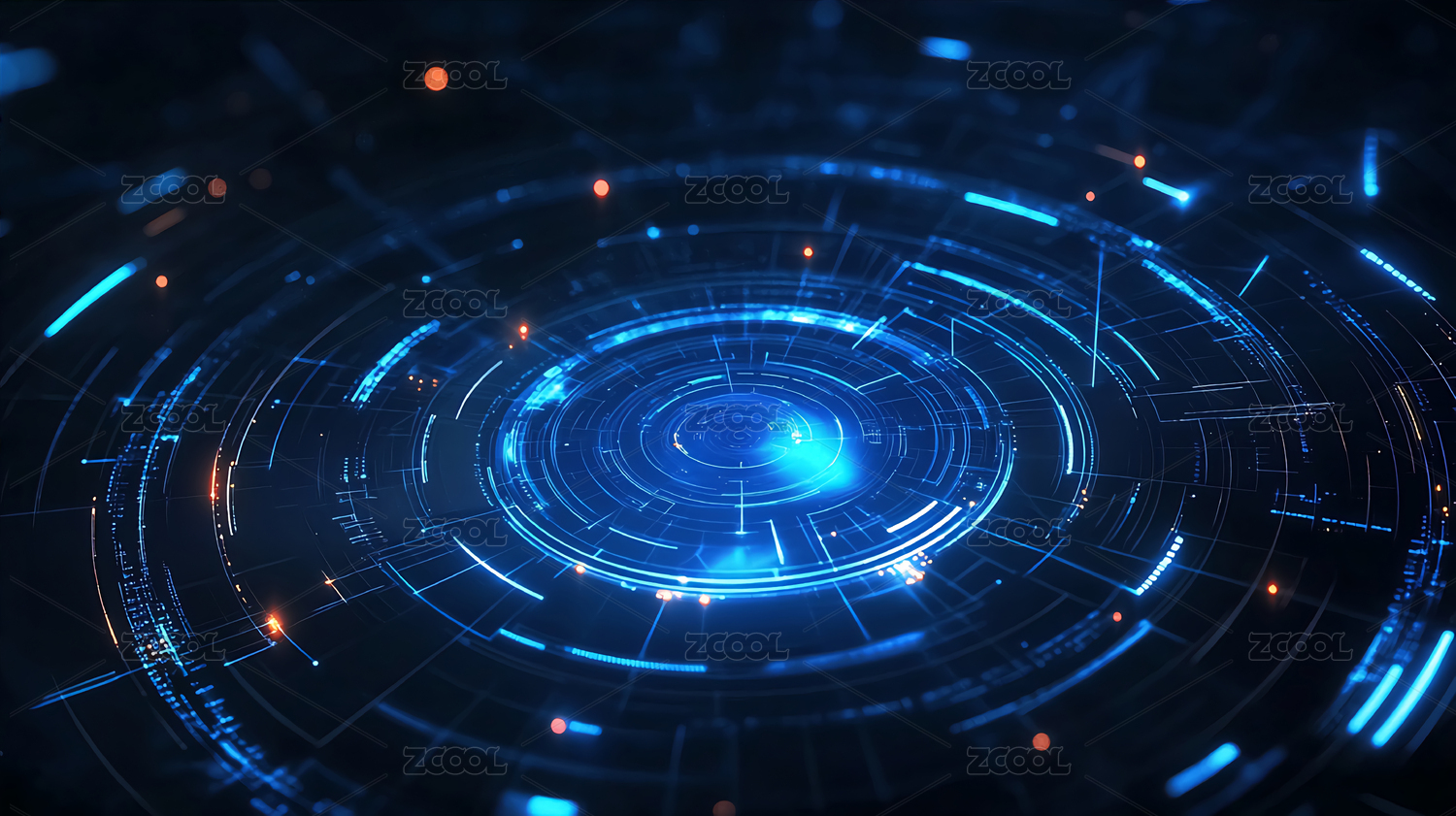 深色,蓝色,橙色,高科技,圆形,界面,网格,发光,点线,复杂