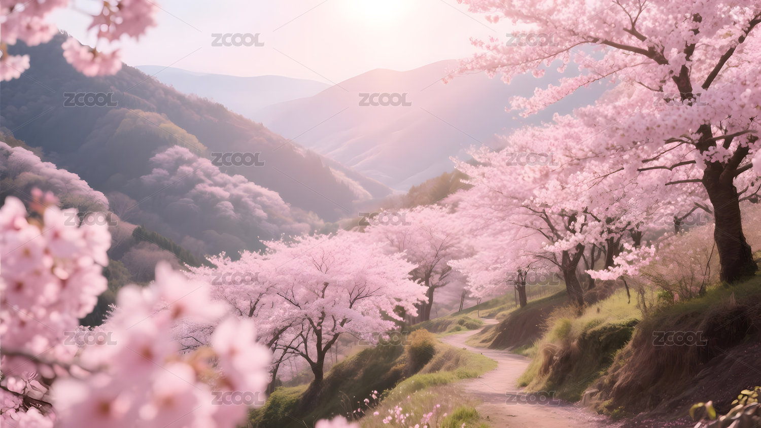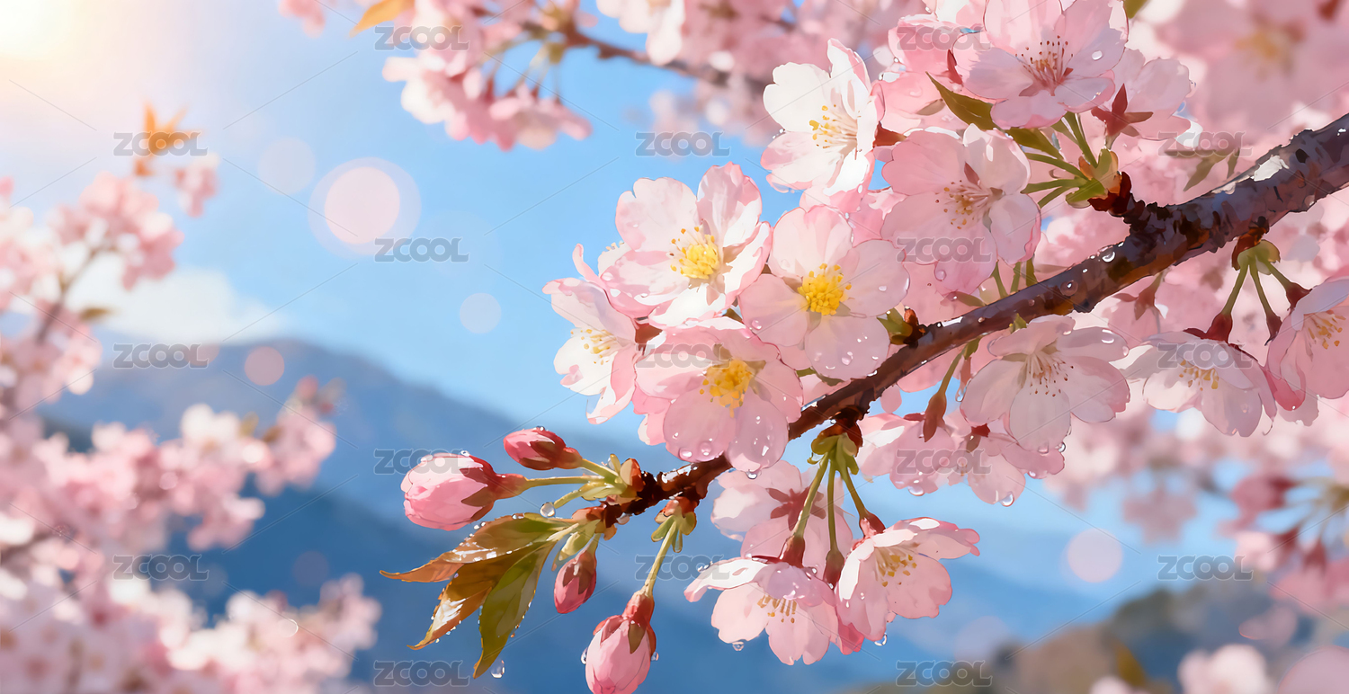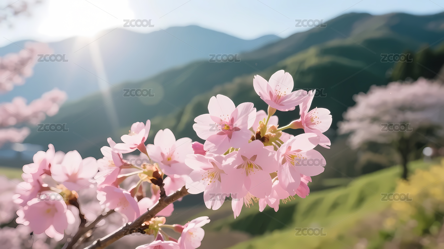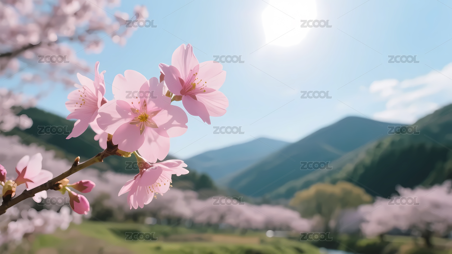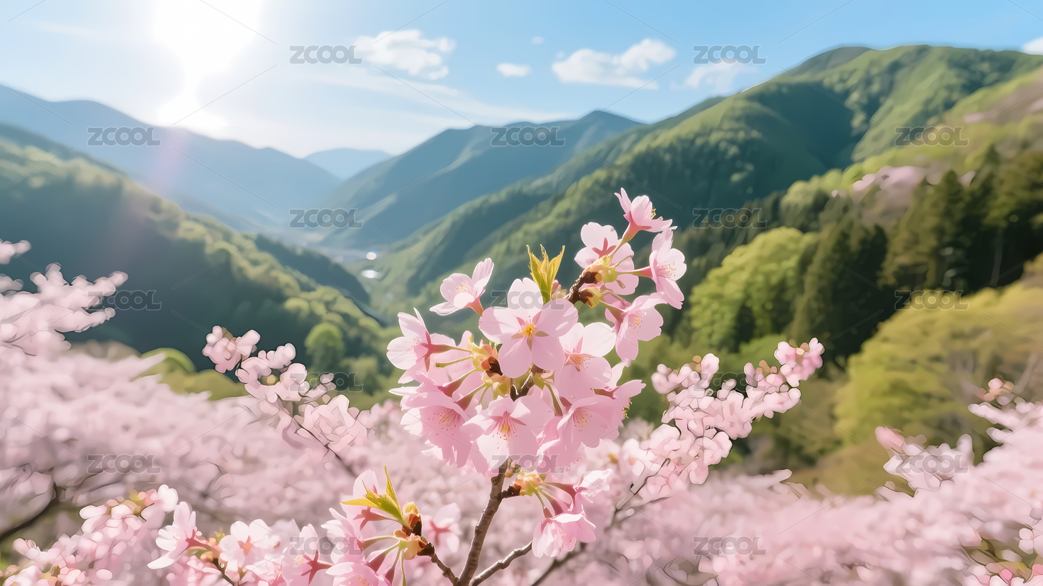 背景,盛开,粉色,蓝天,自然,阳光,前景,山脉,樱花,连绵