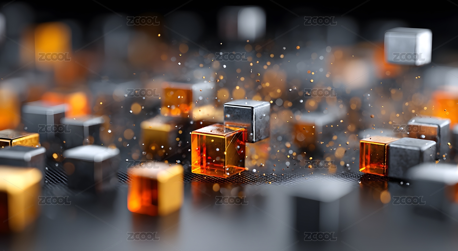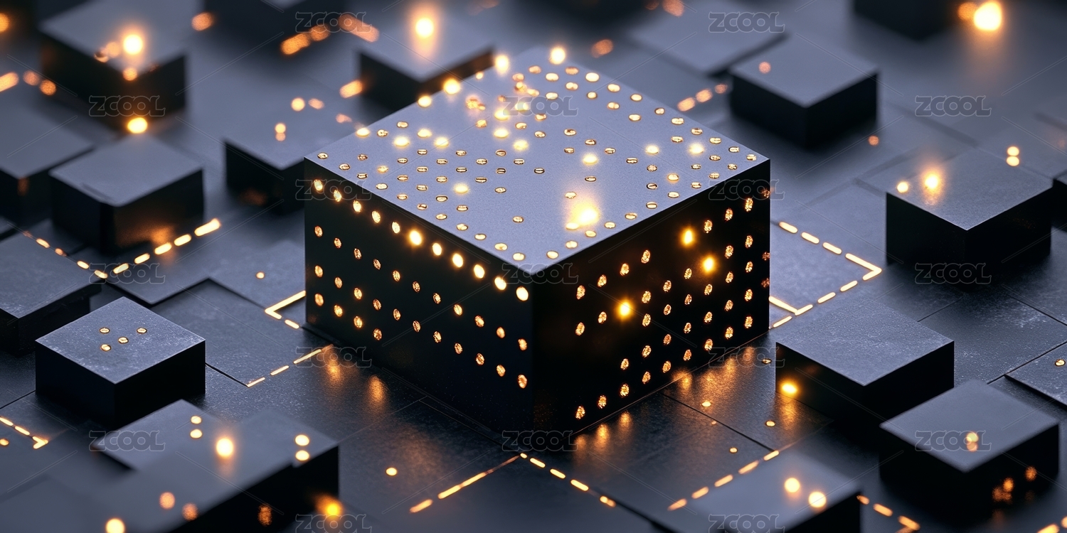 主视觉,背景,场景,发光,方块,科技,金色,光点,立体,数字