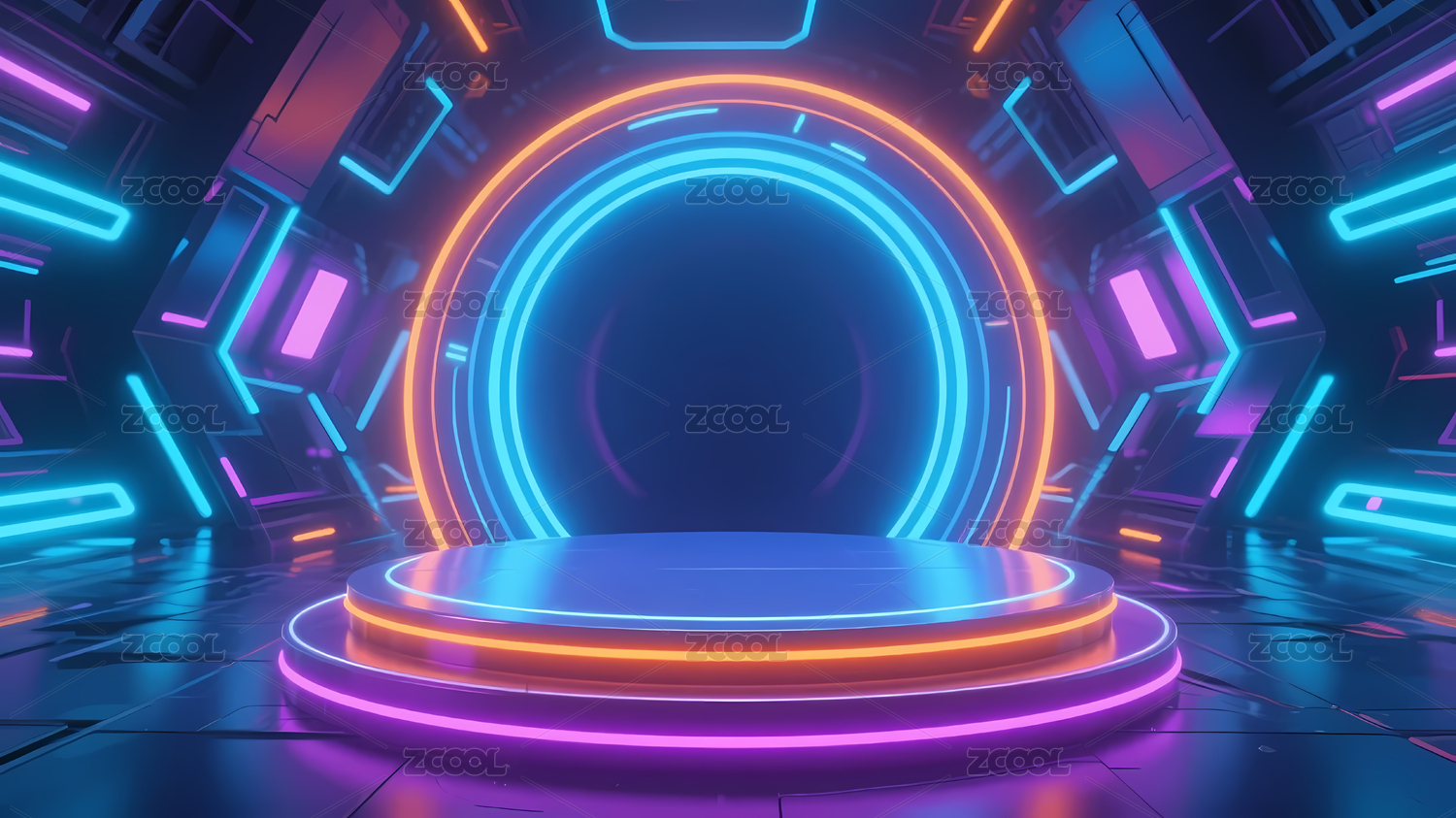 数码紫蓝色霓虹灯圆展台电商图形海报背景