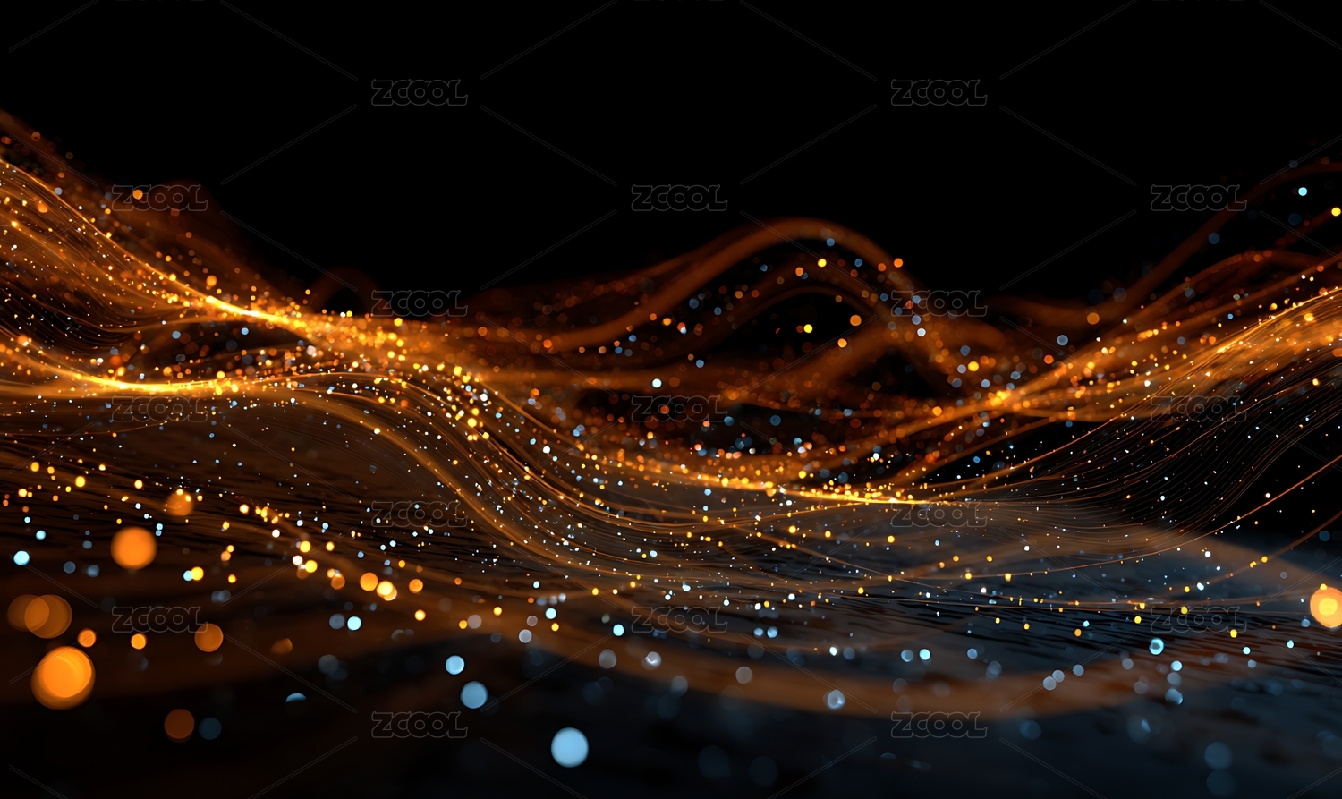 金色波浪与光点的抽象艺术