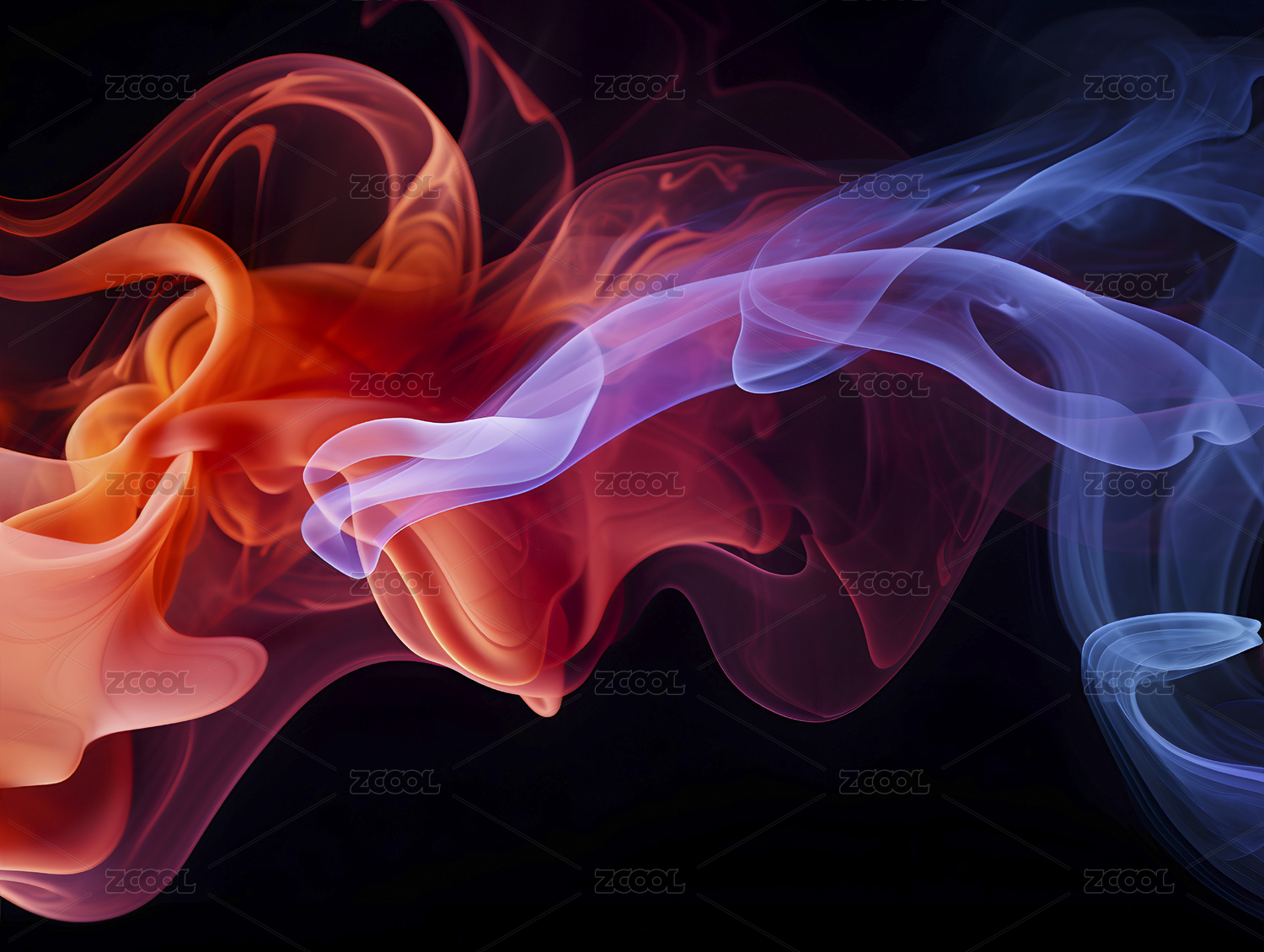 深蓝色与紫色烟雾在黑色背景中流动