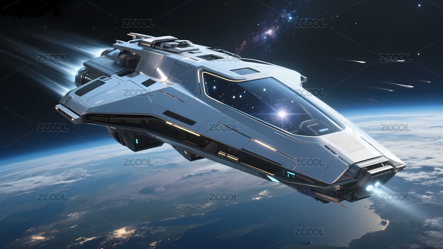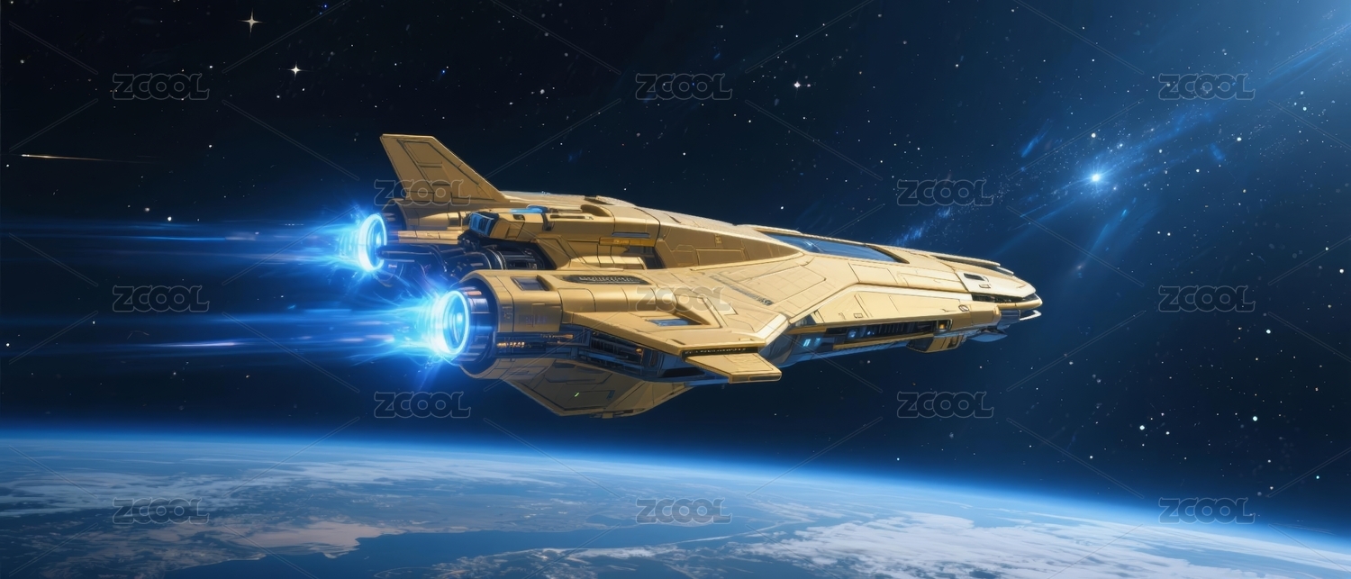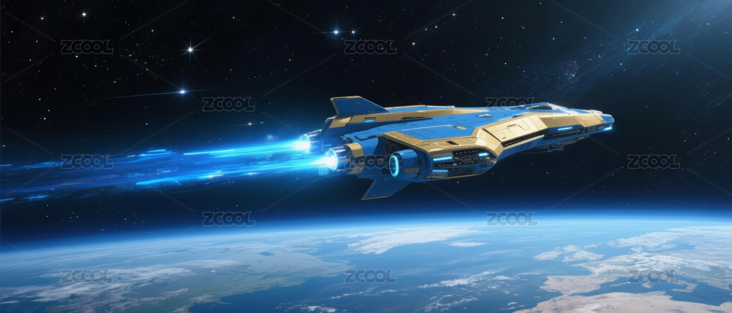蓝色,橙色,宇宙,星空,太空,地球,飞船,银灰色,星光,科幻