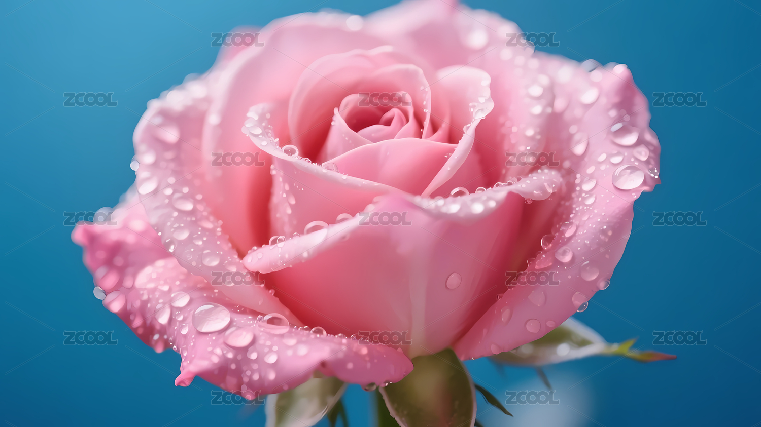 粉红玫瑰水珠浅蓝渐变