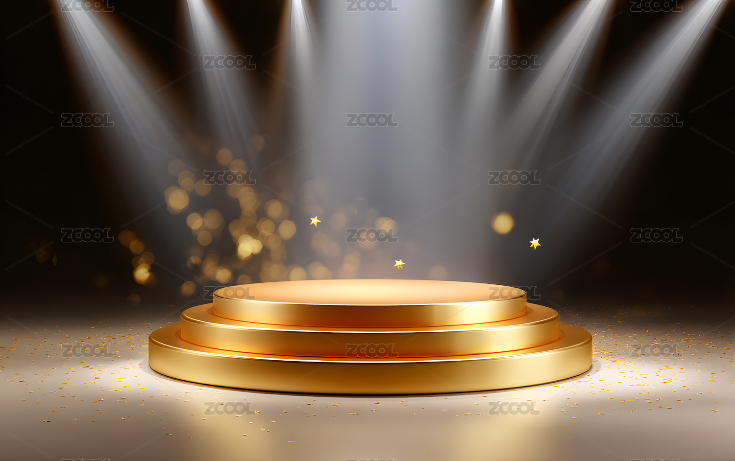 金色光芒照射的圆形讲台