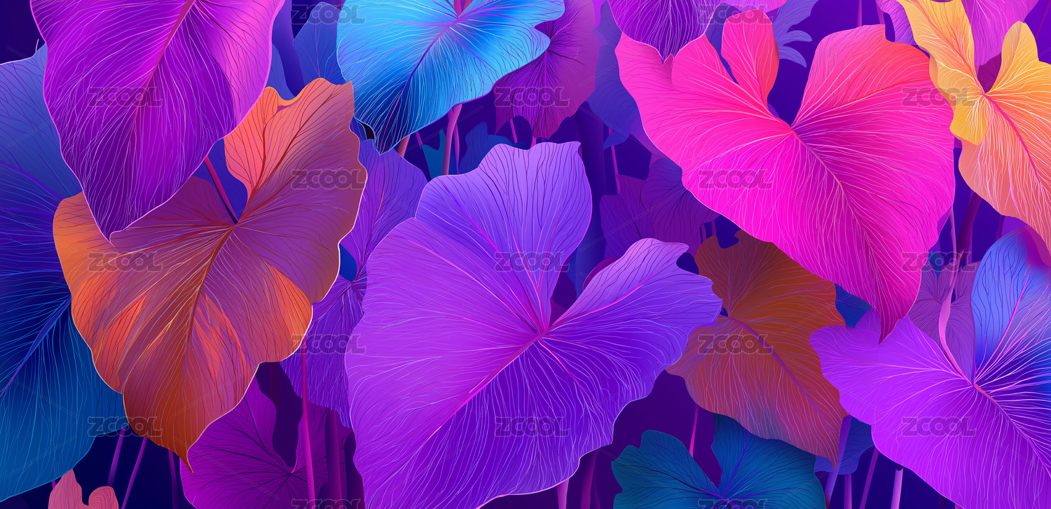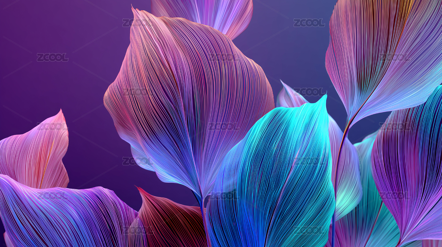 植物,抽象,霓虹,渐变,叶片,结构,粉色,蓝色,紫色,氛围