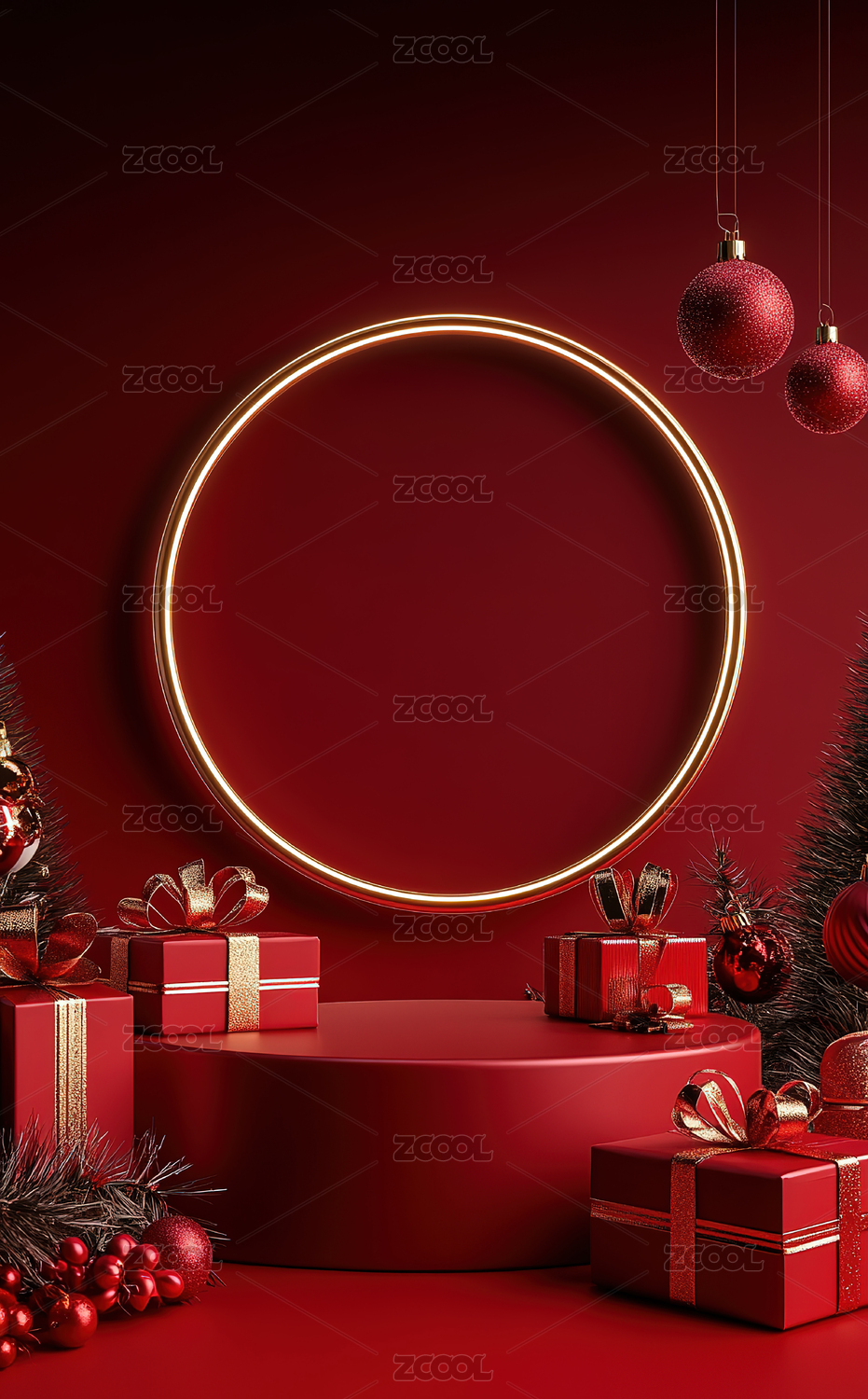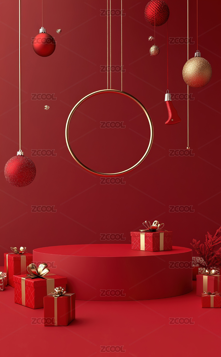 红色背景下的展台