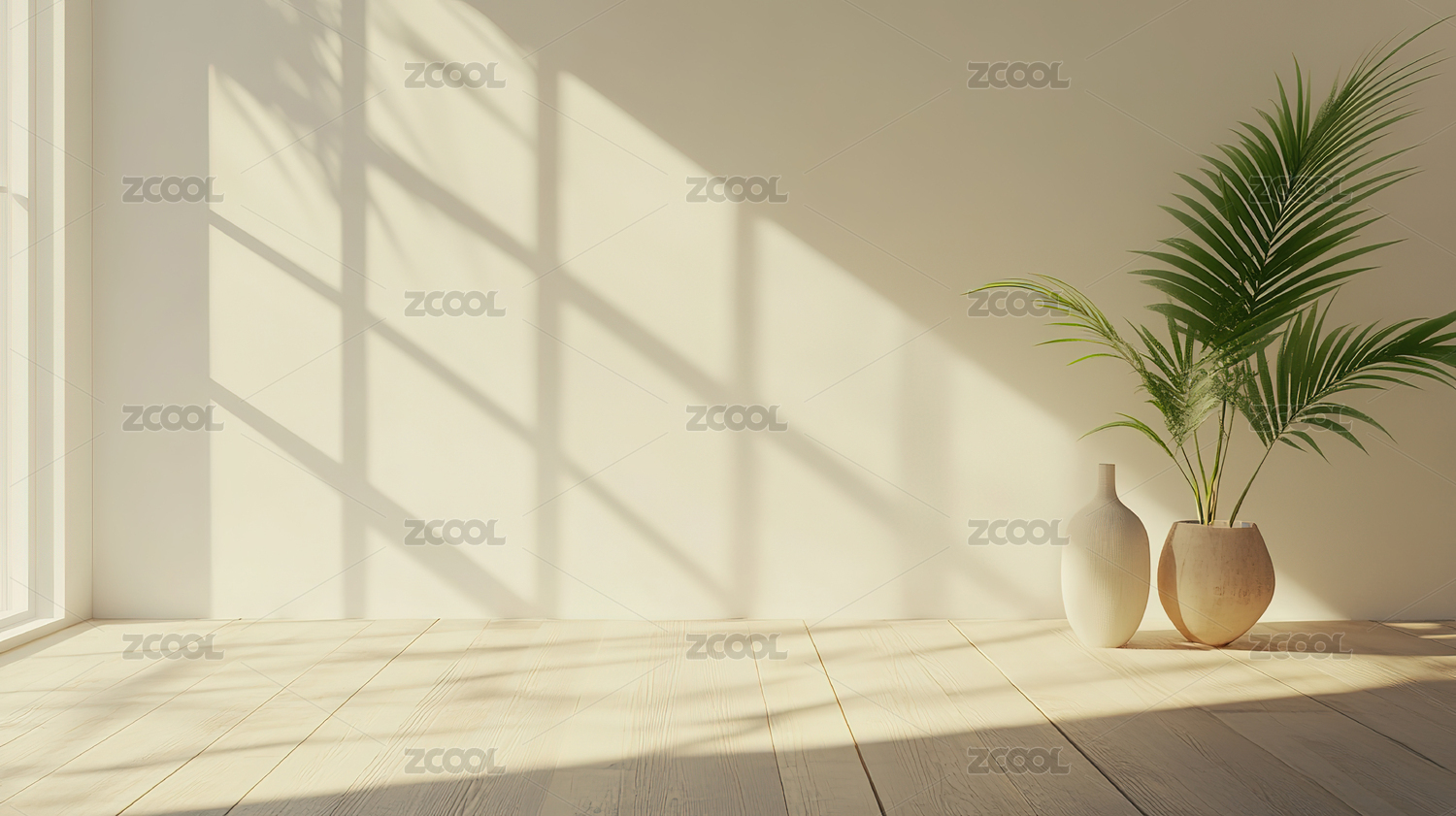 阳光,墙壁,地板,陶瓷花瓶,植物,影子,室内设计,简约风格,自然光,温暖